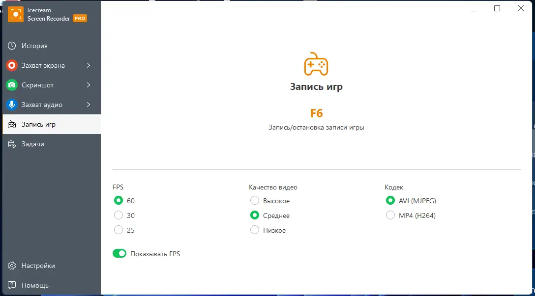 - Быстрый доступ ко всем созданным видео и скриншотам через встроную историю.