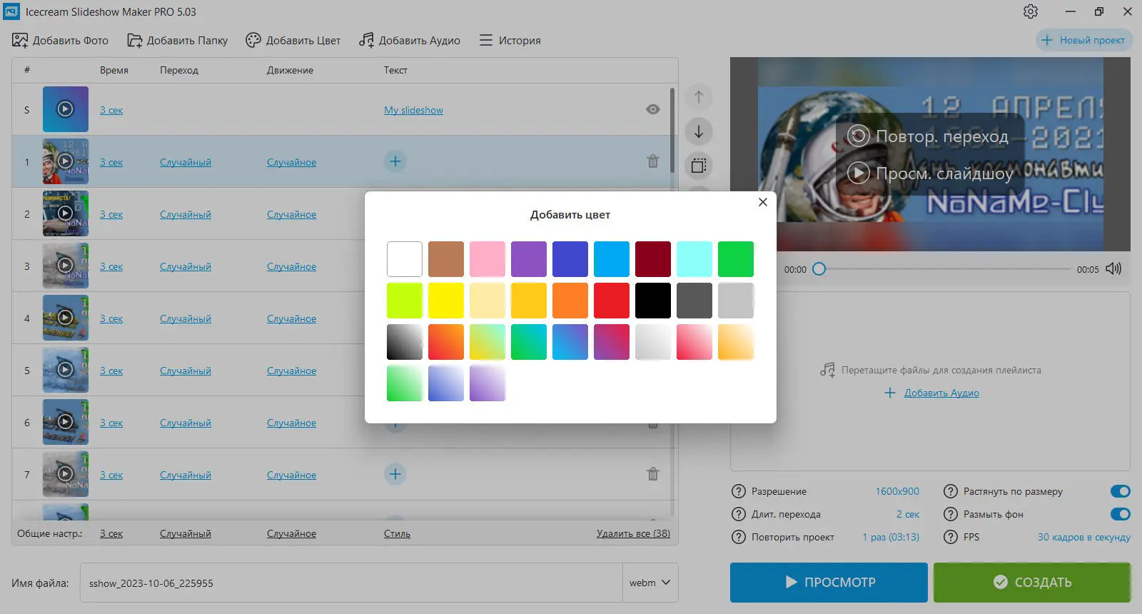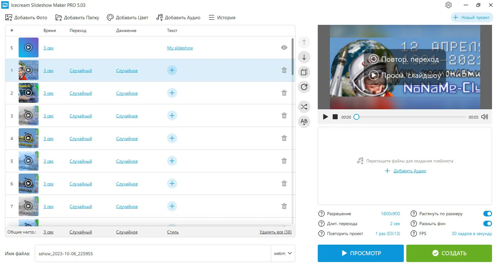 - Удобный предпросмотр готового слайдшоу