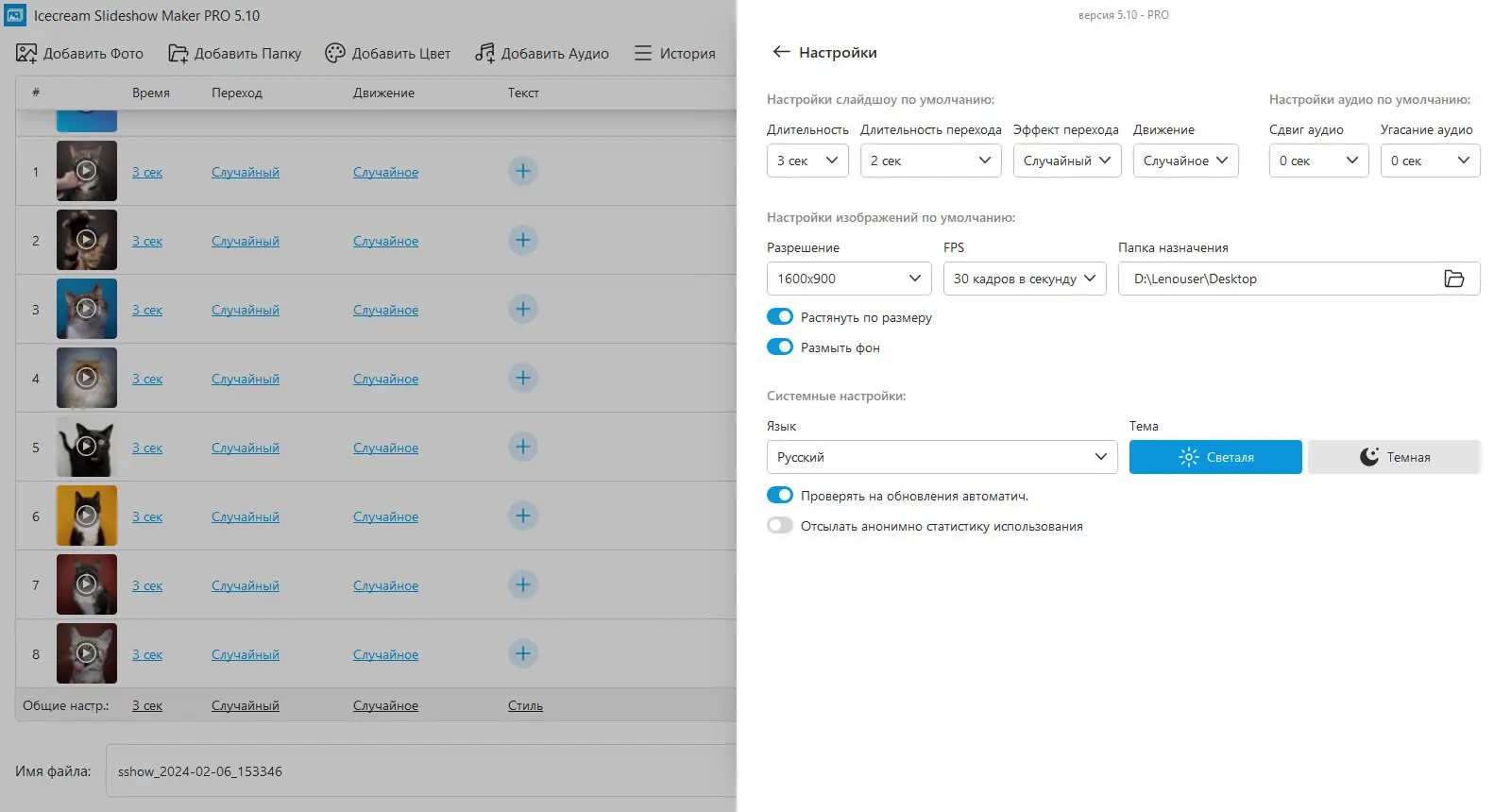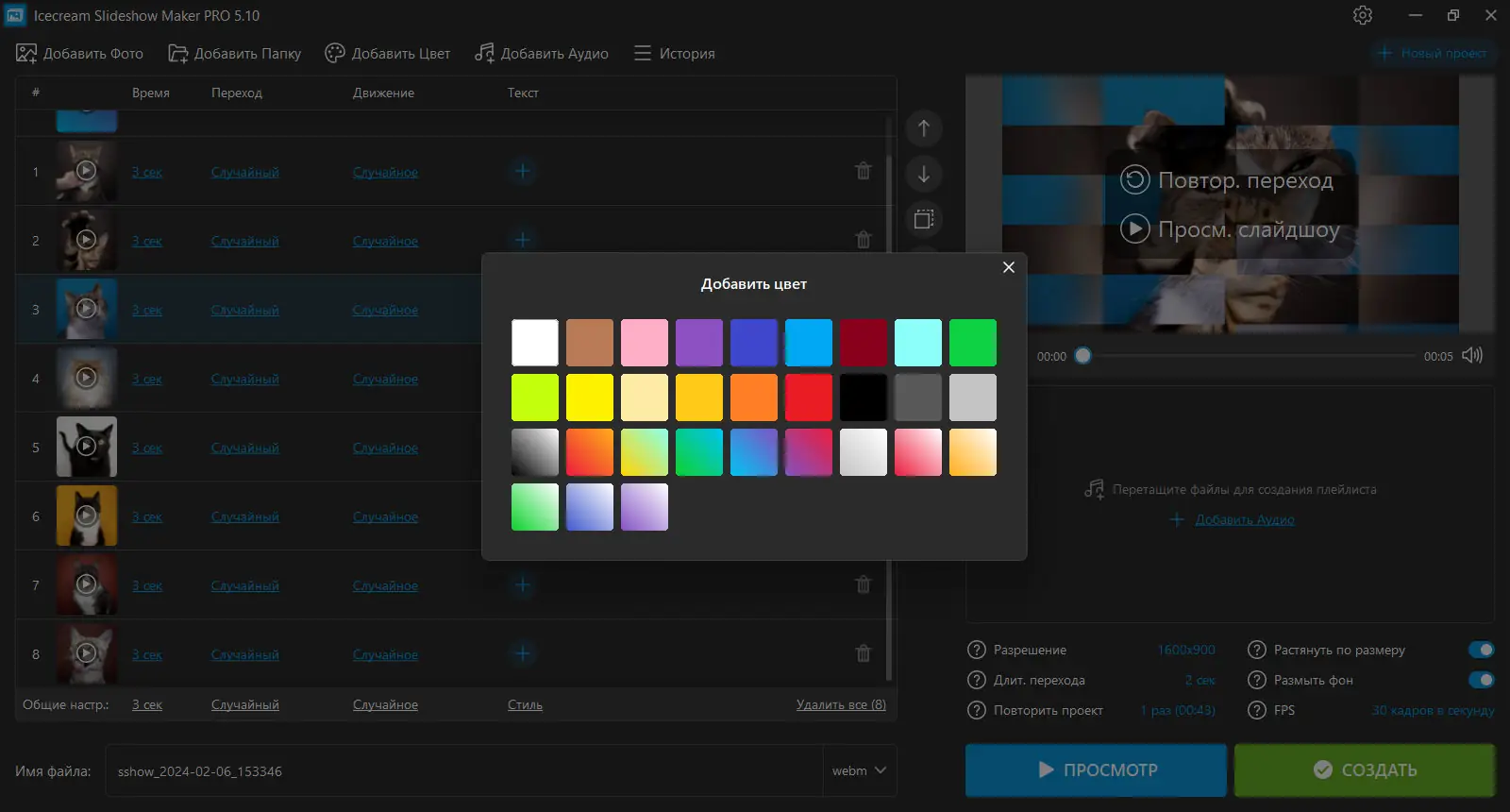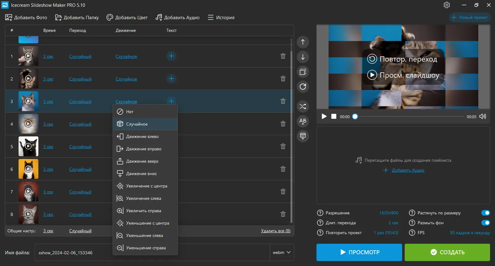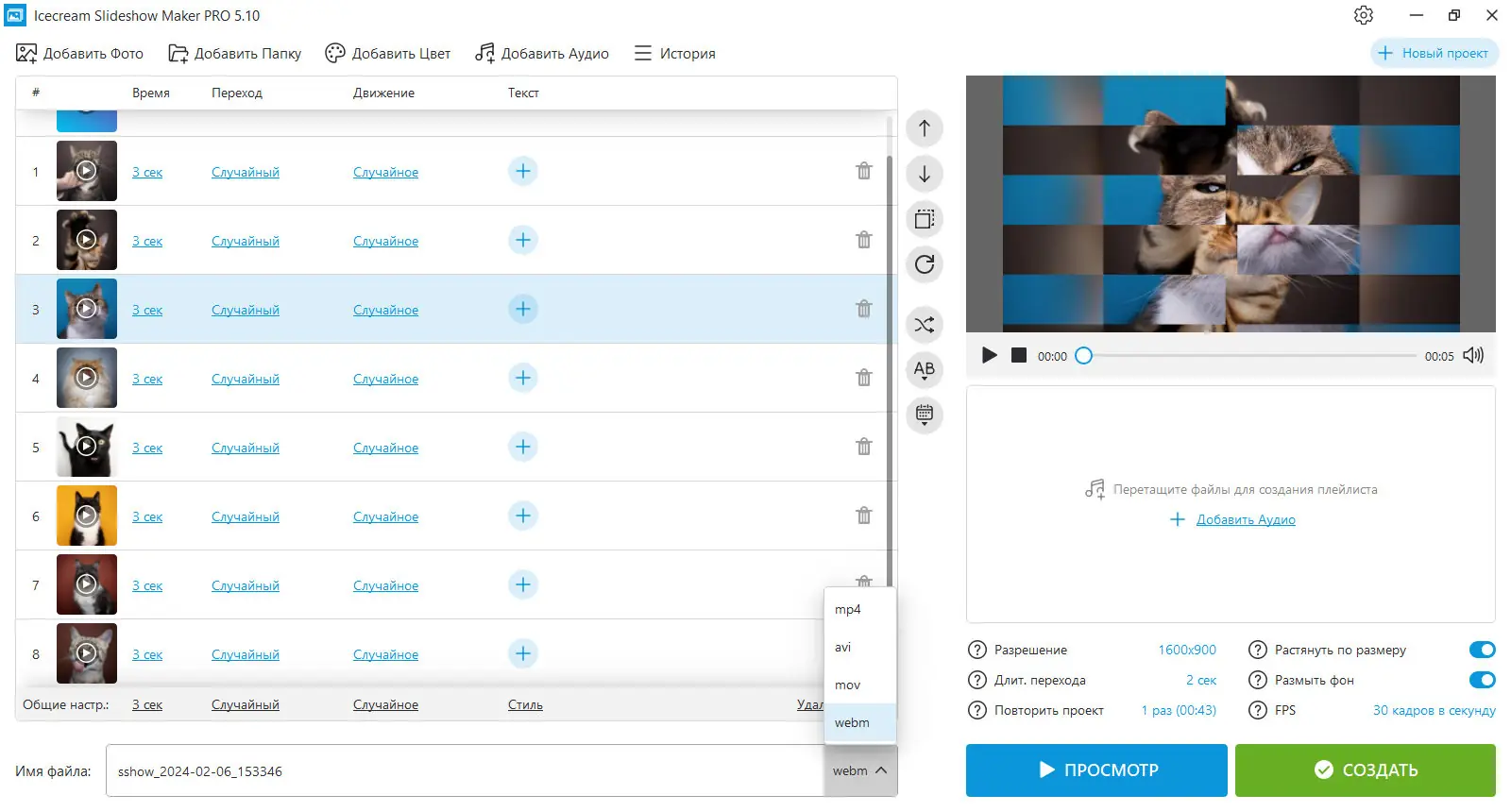 - Создание слайдшоу в разрешении Full HD 1920×1080
