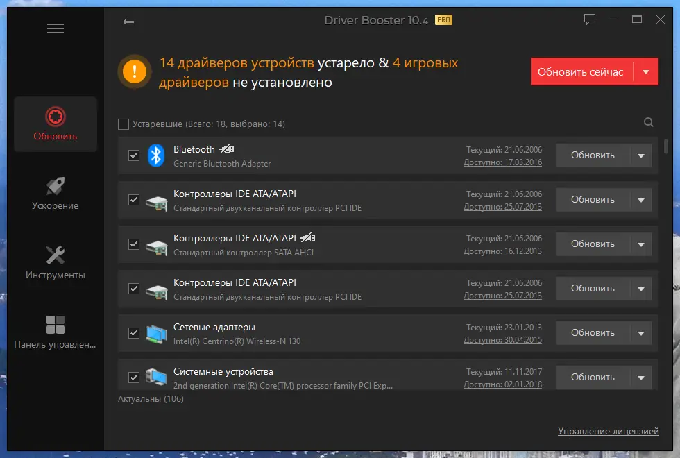 - Обновление всех устаревших драйверов одним щелчком, без необходимости подключения к интернету