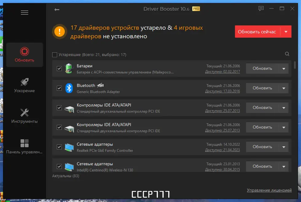 - Обновление драйверов в один клик для повышения производительности оборудования.