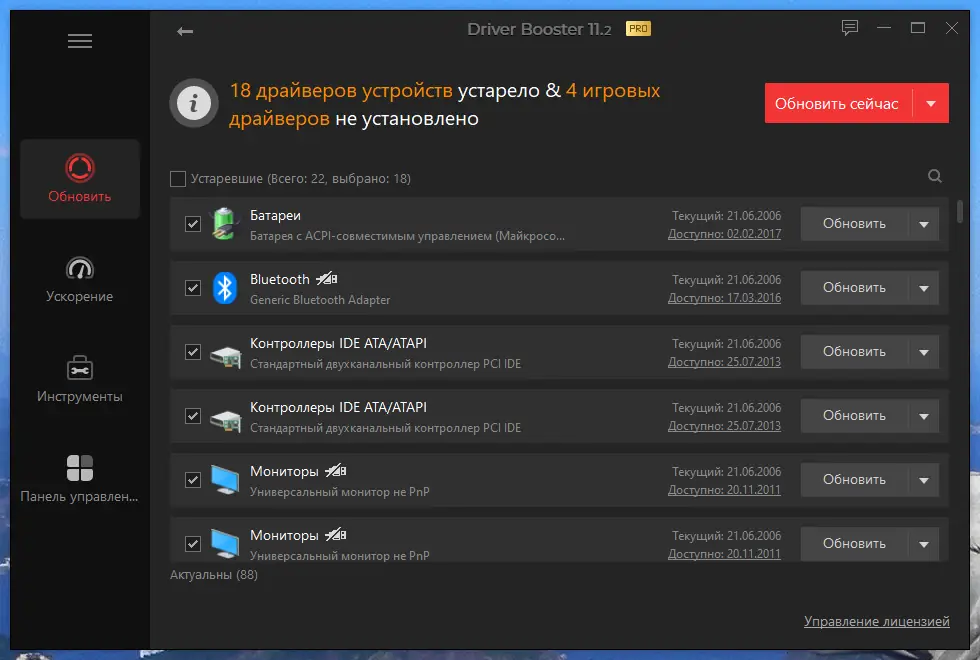 - Обновление драйверов одним кликом для повышения производительности оборудования;