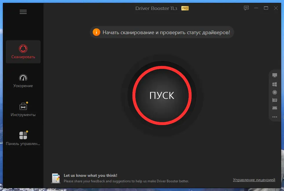 - Запустите программу и выполните первичное сканирование системы для определения устаревших драйверов.