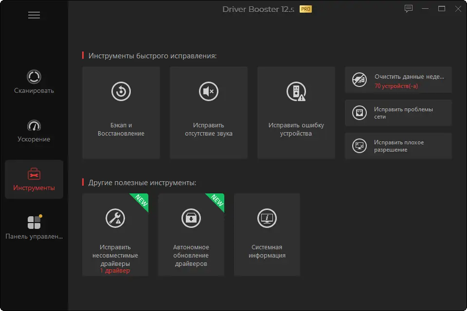 - Обновление драйверов без подключения к интернету и автоматическое резервное копирование
