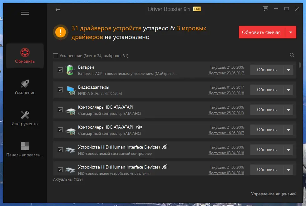 - Обновление драйверов в 1 клик для повышения производительности