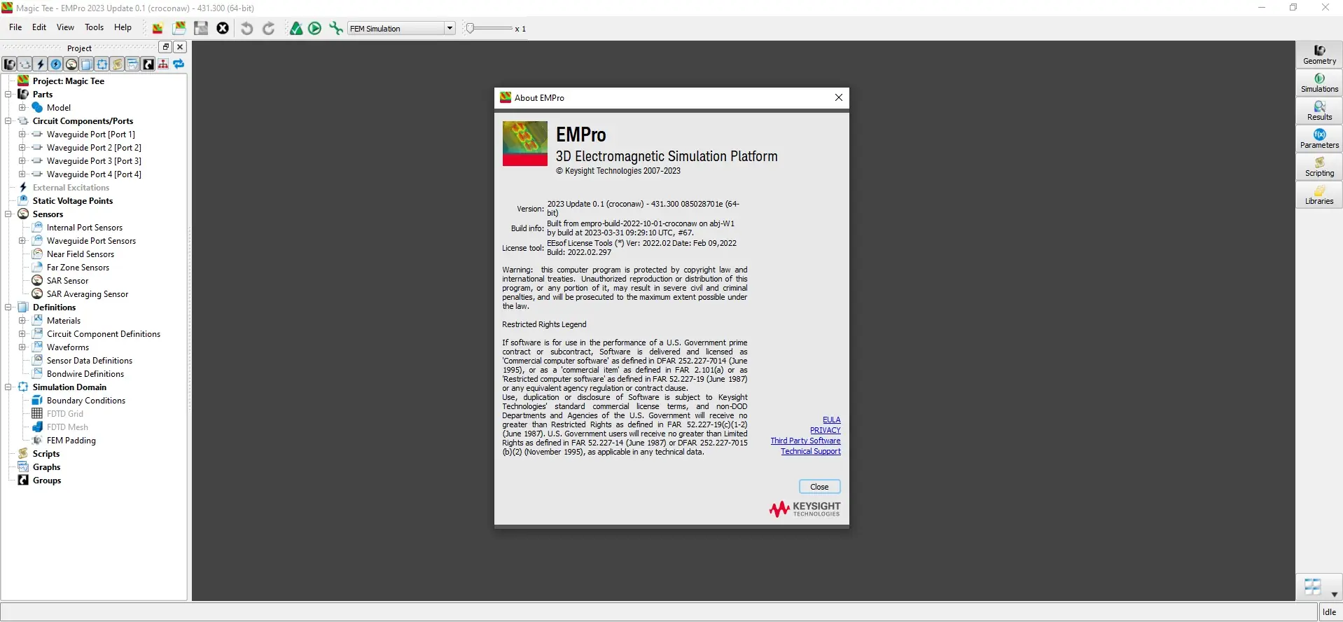 Keysight EMPro — современная среда для точного 3D электромагнитного моделирования, использующая методики FEM и FDTD. Обеспечивает импорт и экспорт проектов, интеграцию с САПР для моделирования высокочастотных устройств и антенн, а также проверку соответствия стандартам по электромагнитной совместимости.