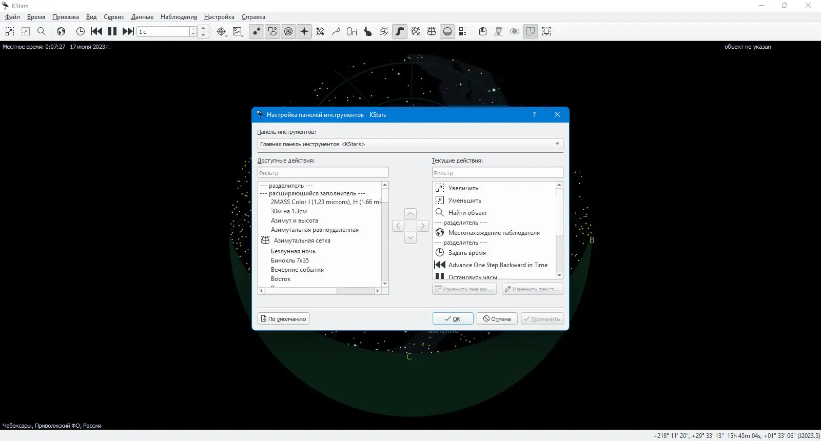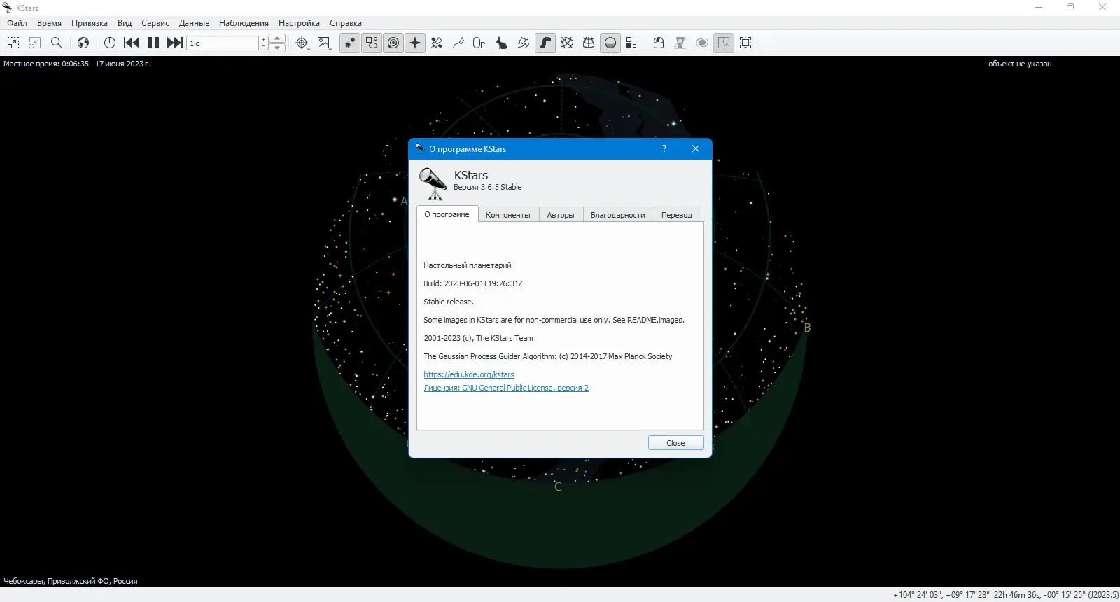 KStars — бесплатное, с открытым исходным кодом и кроссплатформенное программное обеспечение для астрономии, которое позволяет симулировать ночное небо в любой точке Земли в любую дату и время.
