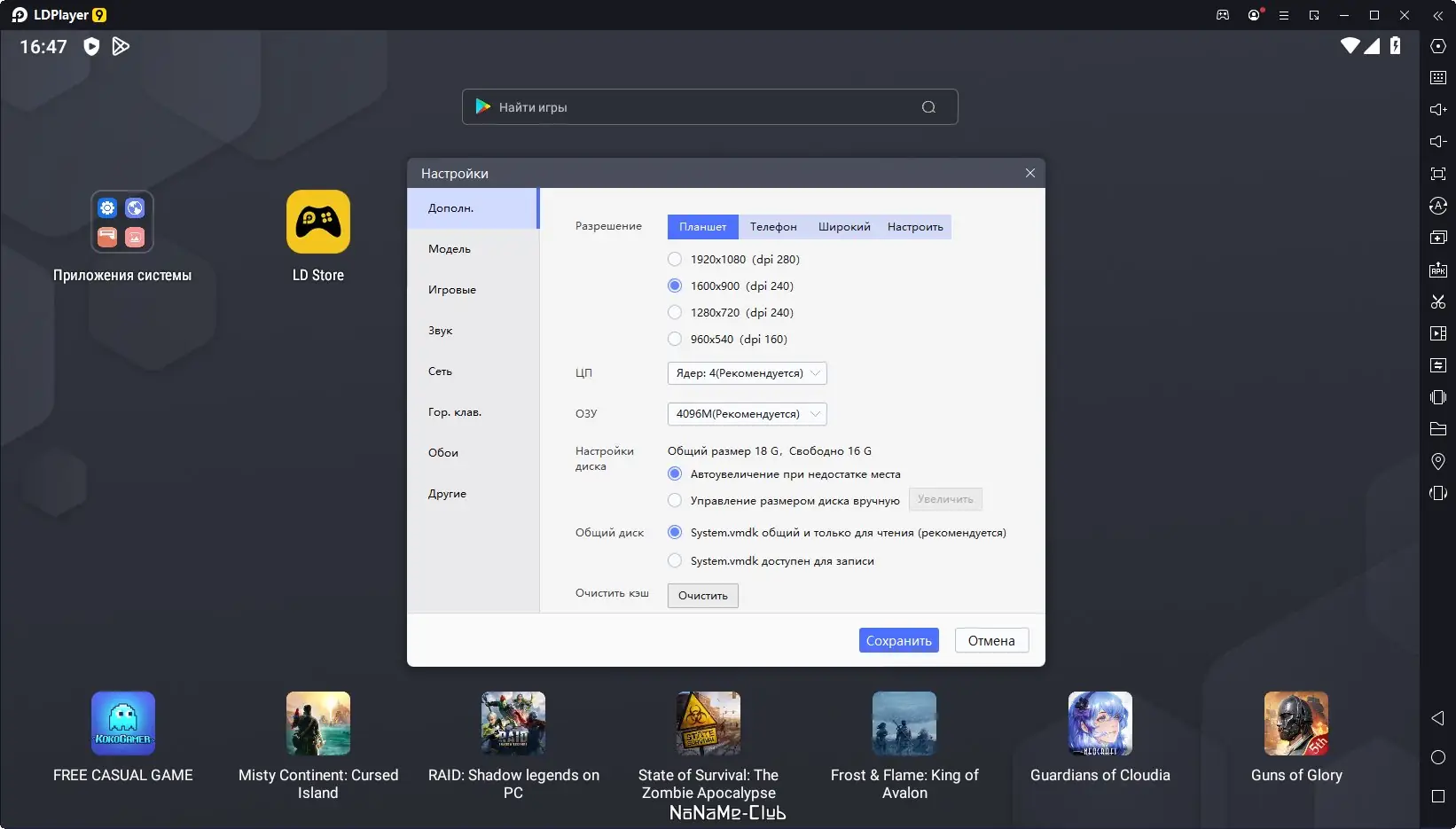 - Установка игр и приложений из Google Play и LD Store