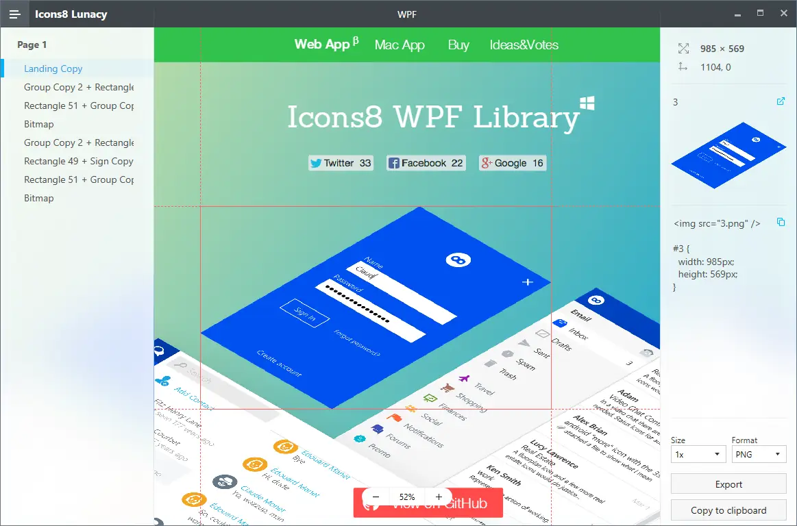 Icons8 Lunacy — это бесплатный автономный просмотрщик Sketch-файлов, предназначенный для разработчиков и дизайнеров на операционной системе Windows, обеспечивающий удобную работу без подключения к интернету.