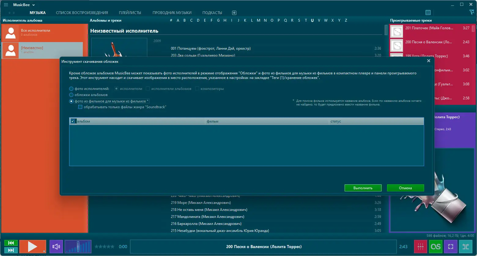 Музыкальный плеер с широкими возможностями для управления коллекциями и их автоматической организацией.