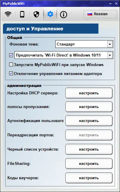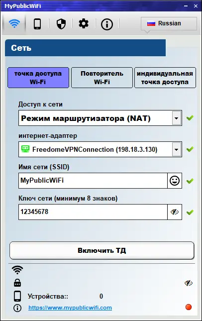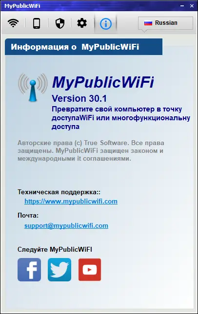 MyPublicWiFi — это удобное решение для организации временной или постоянной точки доступа Wi-Fi на вашем компьютере под управлением Windows. Приложение позволяет создавать «hotspot» полностью автоматизировано, обеспечивая шифрование WPA2 и встроенный брандмауэр. Оно подходит для использования в гостиницах, на массовых мероприятиях или для расширения беспроводного покрытия в домашних условиях. Благодаря интуитивному интерфейсу достаточно указать имя сети и пароль для быстрого запуска точки доступа, а встроенная система отслеживания посещенных сайтов и логирования делает его универсальным инструментом для контроля интернет-активности.