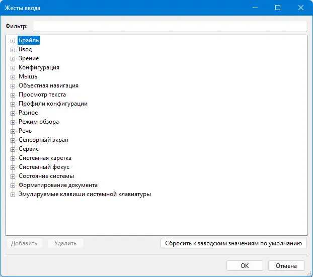 - Объявление элементов управления и текста при работе с сенсорными экранами жестами.