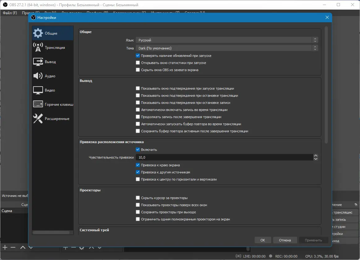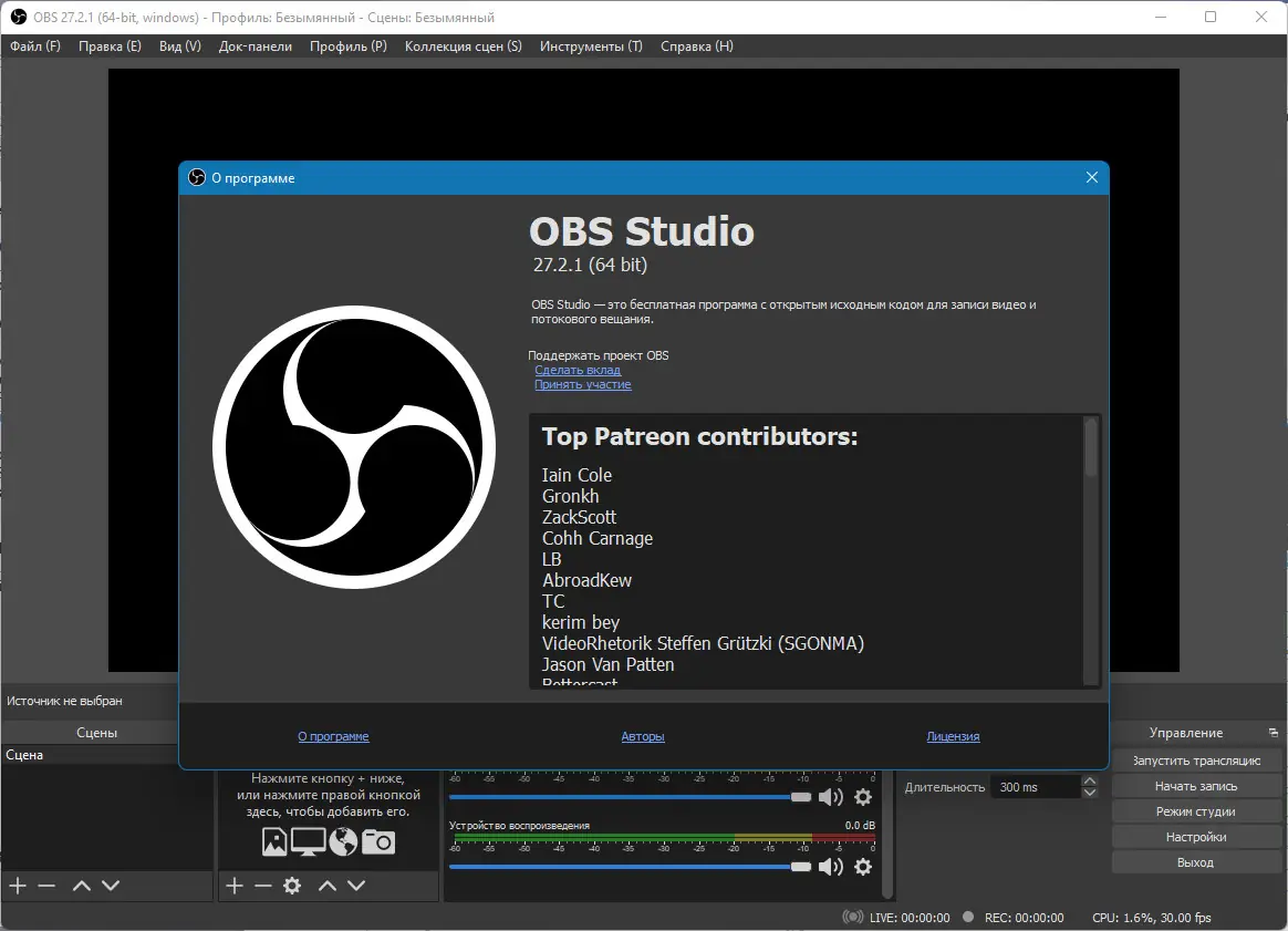 - Добавление неограниченного количества сцен и источников, что обеспечивает гибкость настройки потоков.