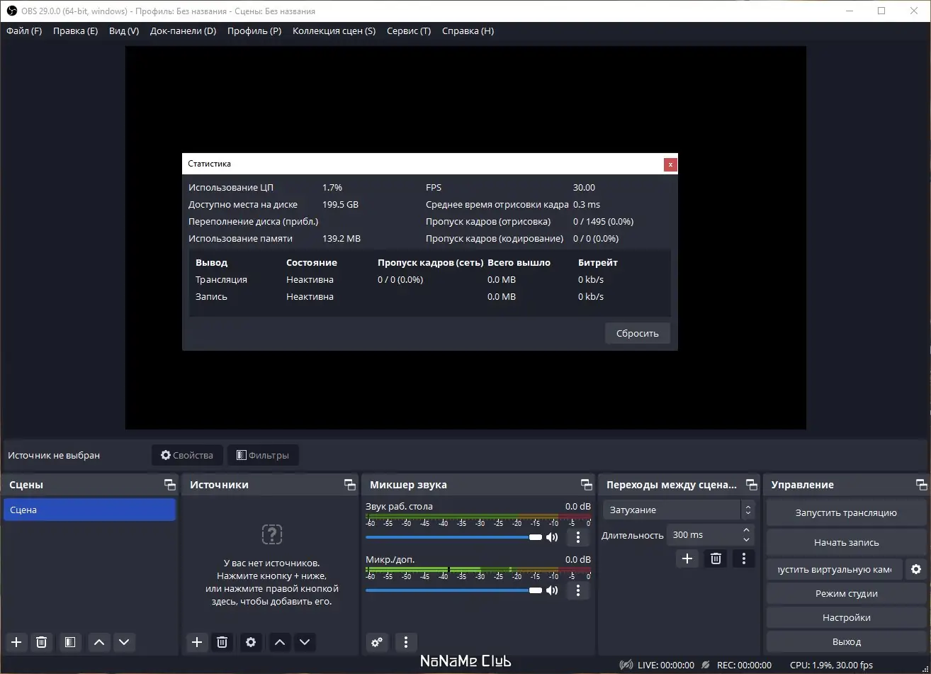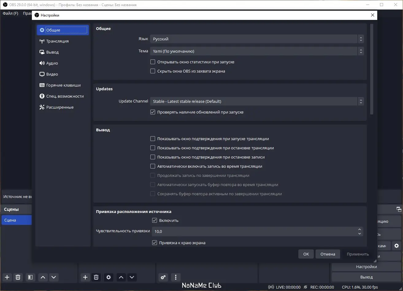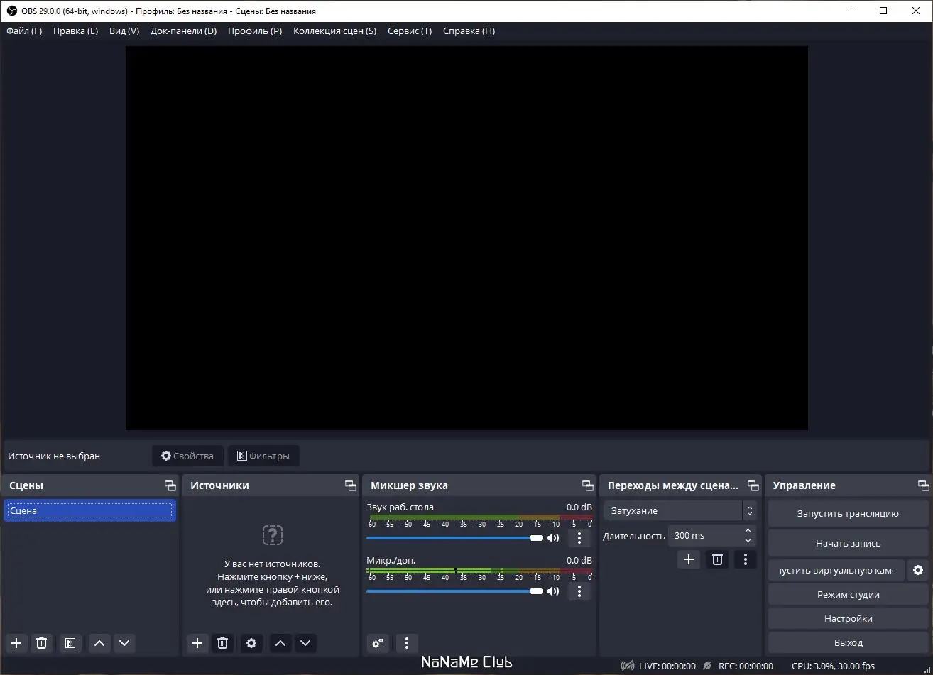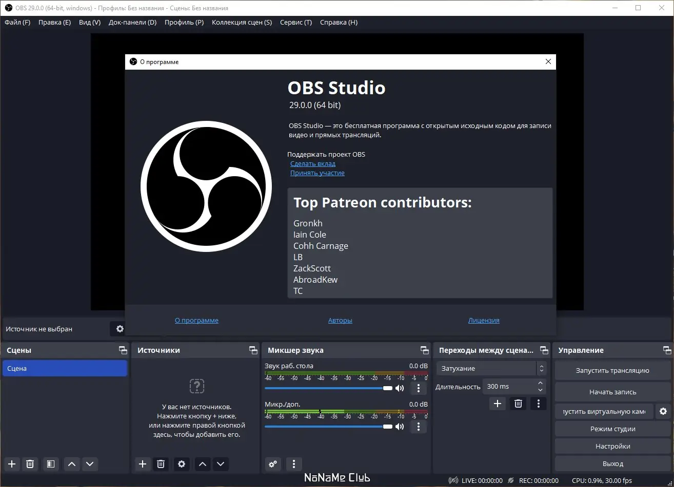 - Добавление неограниченного количества сцен и источников для гибкого управления трансляцией.