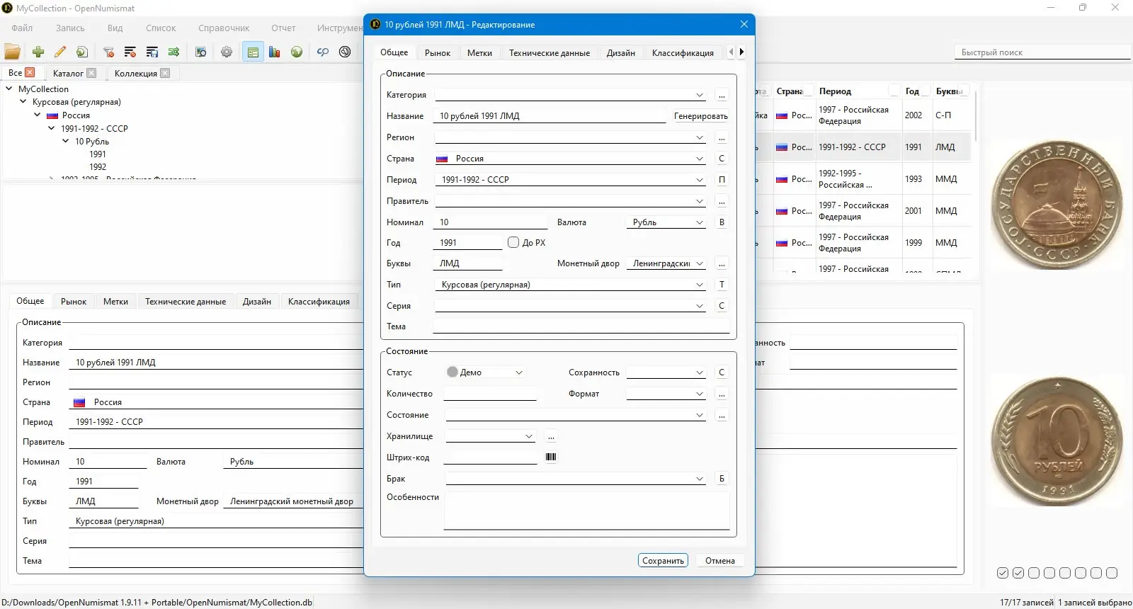 OpenNumismat — удобное и надежное приложение для коллекционеров монет и нумизматов, предназначенное для создания и управления нумизматической коллекцией. Современная программа способствует организации коллекции, обеспечивая детальный учет и анализ каждой монеты.