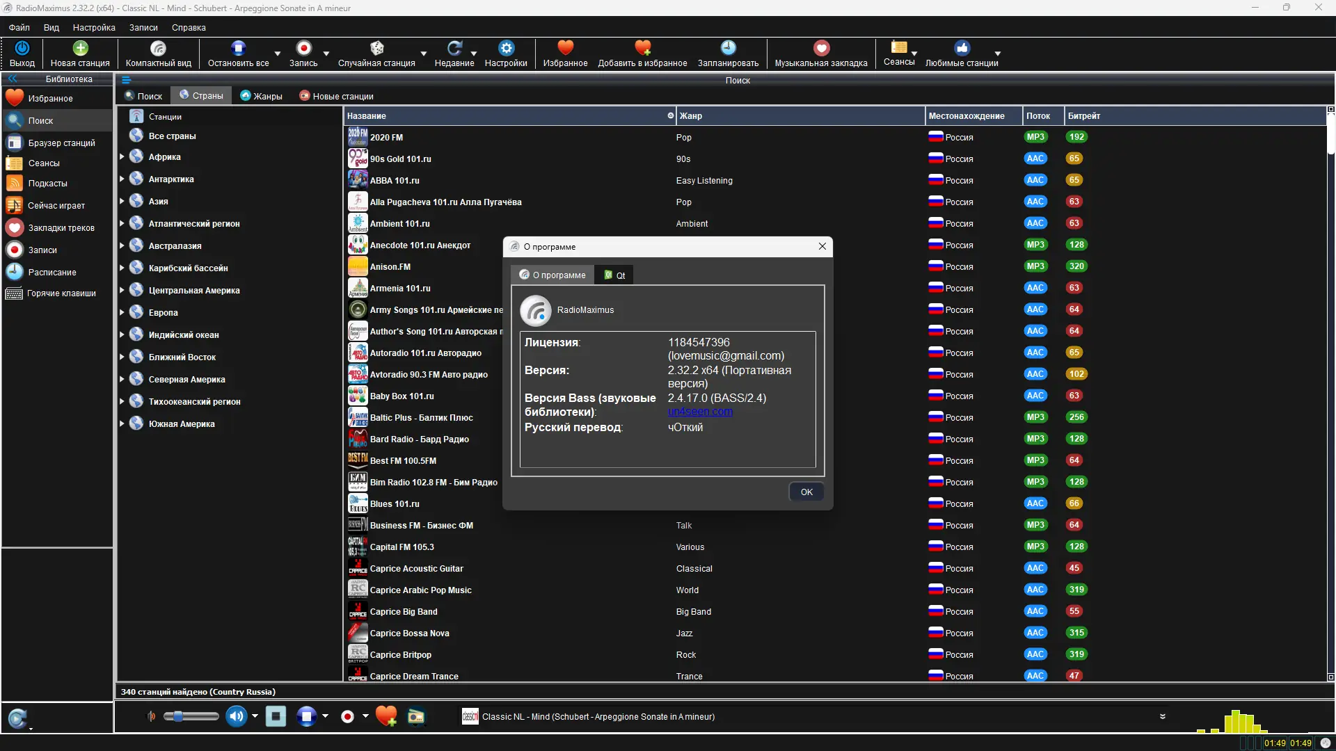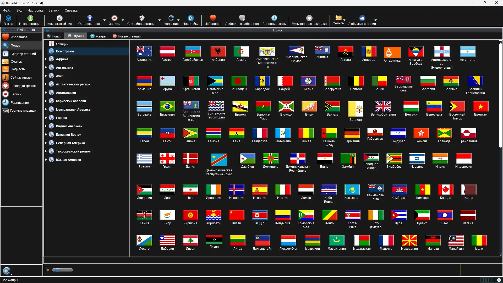 RadioMaximus — удобный и мощный инструмент для прослушивания и записи потокового аудио различных радиостанций мира. Он позволяет захватывать звук сразу с нескольких каналов, настраивая при этом необходимые параметры для качественной записи. Все полученные данные легко сохраняются в памяти компьютера в одной из пяти поддерживаемых форматов: RAW, MP3, AAC, OGG и WMA, что обеспечивает гибкость и удобство использования.