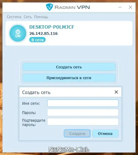 - Создать новую виртуальную сеть, задав название и пароль