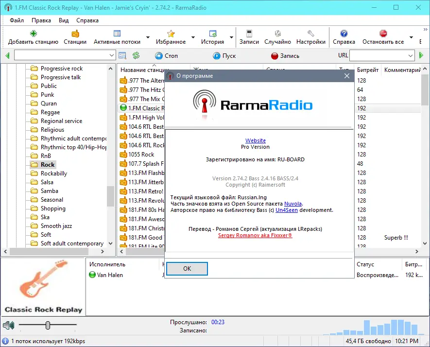 Данная программа предоставляет пользователю возможность комфортного прослушивания и записи множества интернет-радиостанций. Обладая богатым функционалом, она позволяет сортировать станции по жанрам, регионам, битрейту и сетям, обеспечивая быстрый поиск нужных радиопередач. Кроме того, программа автоматически скачивает информацию о проигрываемых песнях, включая альбомную графику, и поддерживает интеграцию с плагинами медиаплеера Winamp. Благодаря возможности одновременного прослушивания нескольких станций и планированию записи, пользователи могут создавать персональные списки для автоматического сохранения транслируемых передач, а также автоматически начинать запись при воспроизведении определённых композиций.