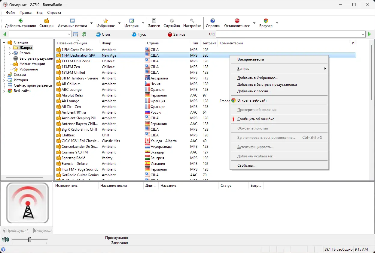 - После завершения установки запустите программу и настройте необходимые станции и параметры.