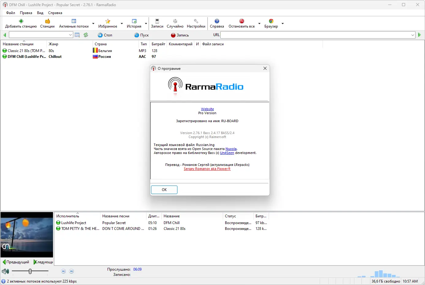 Дополнительно | Поддержка .NET Framework 4.0 или выше, подключение к интернету для скачивания станций и обновлений |
