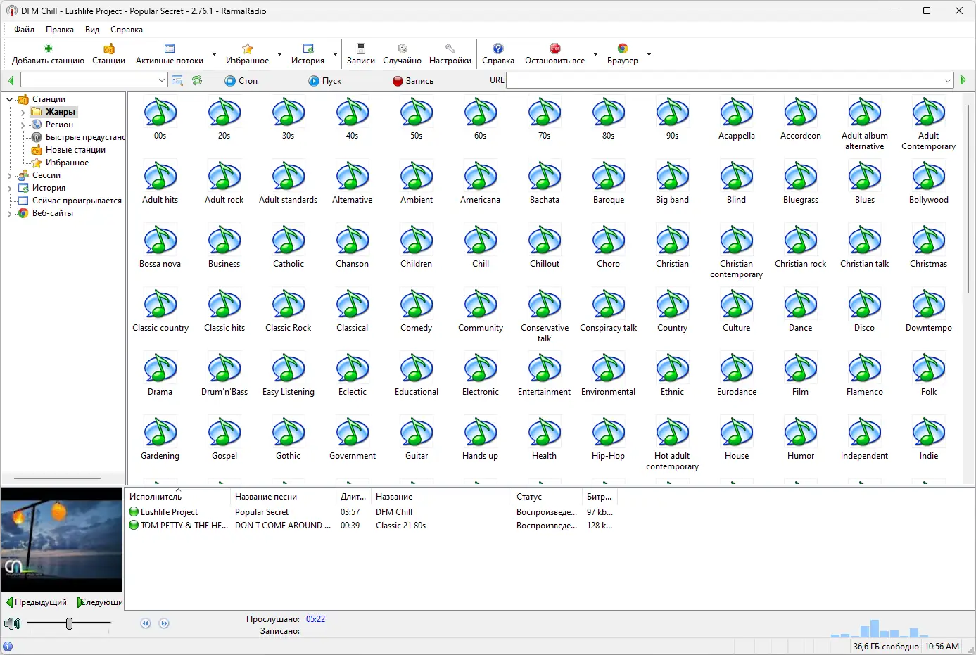 Данная программа предоставляет пользователю возможность легко искать, настраивать и управлять большим количеством радиостанций, рассортированных по жанрам, регионам и другим параметрам. RarmaRadio позволяет одновременно прослушивать несколько станций, автоматически скачивать информацию о транслируемых песнях, включая альбомные графики, а также осуществлять запись потокового аудио по расписанию или с автоматическим началом при появлении определенной композиции. Поддержка плагинов Winamp расширяет функциональность, а возможность сохранения тегов в файлах позволяет сохранять информацию о треках для организации медиатеки.