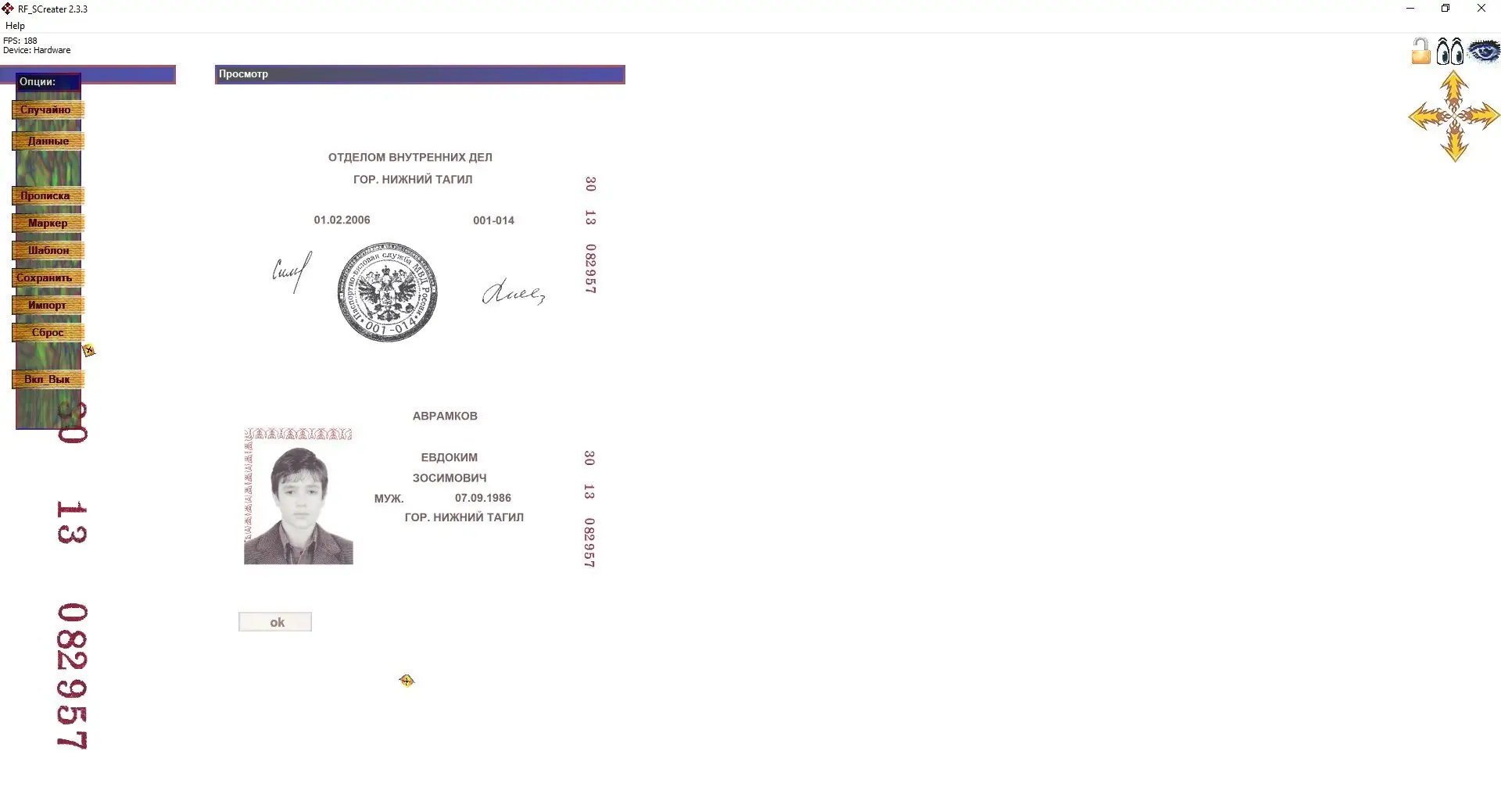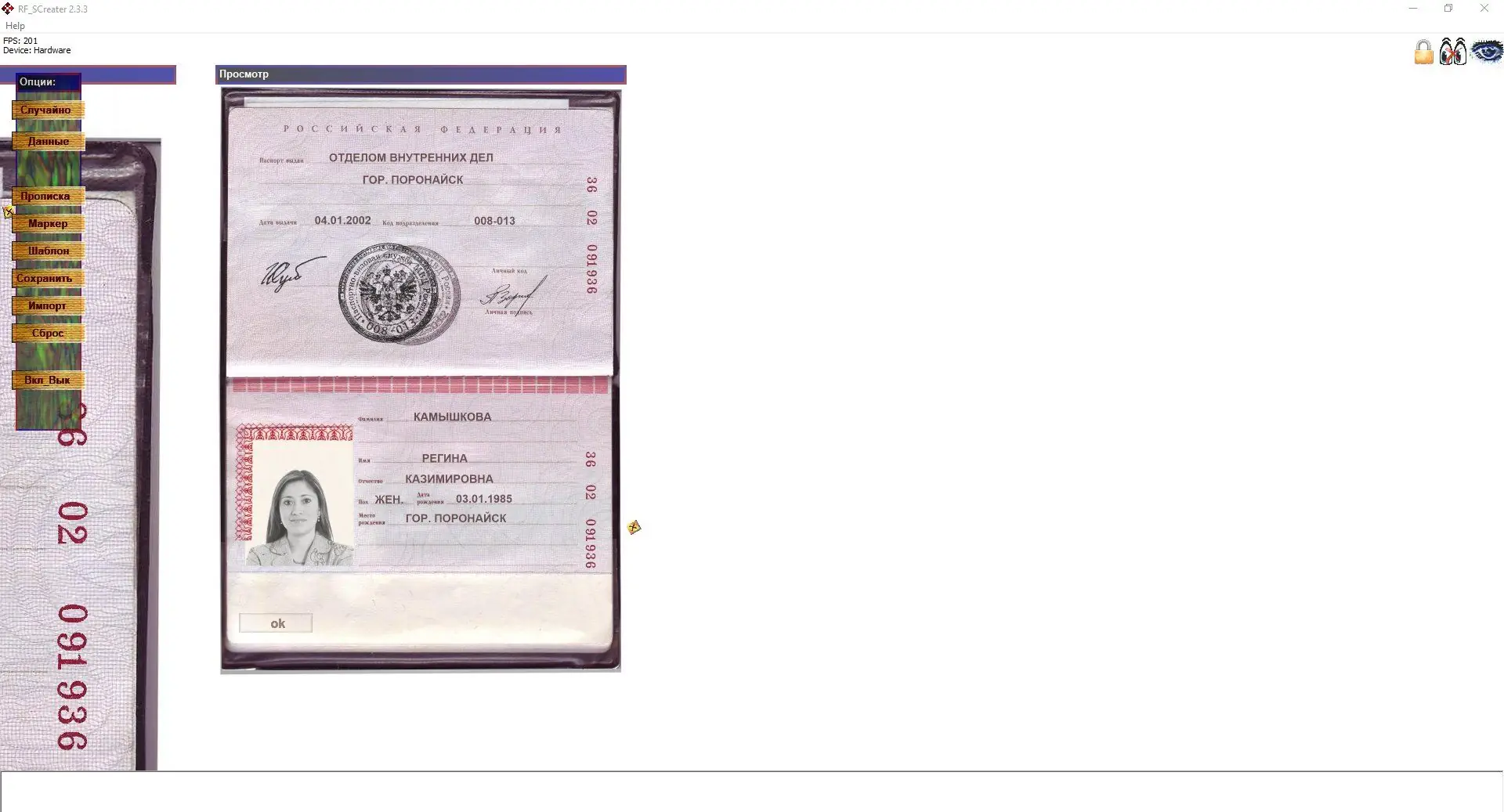 RF SCreater — уникальная программа для генерации и редактирования сканов паспортов в целях обеспечения безопасности персональных данных в интернете. Простая в использовании, с широкими возможностями редактирования и высоким разрешением изображений, она помогает защитить свои личные данные от мошенников.