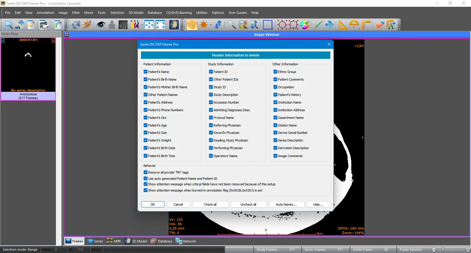- Встроенный редактор и многофайловый редактор DICOM для редактирования метаданных и изображений
