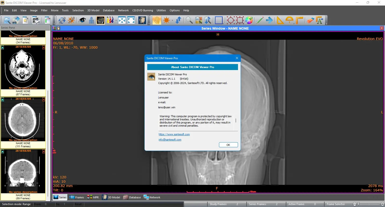Sante DICOM Viewer Pro — это мощное решение для специалистов в области медицины, разработанное с нуля и основанное на передовых технологиях визуализации DICOM. В отличие от большинства аналогов, созданных с использованием свободных библиотек, эта программа обладает уникальными функциями, которые позволяют осуществлять комплексную работу с медицинскими изображениями. С момента появления в 1999 году, она зарекомендовала себя как одна из самых популярных и надежных платформ среди профессиональных пользователей по всему миру. Программа включает в себя просмотр изображений, анонимайзер, конвертер, клиент и мини-сервер PACS, а также инструменты для записи CD/DVD с возможностью просмотра, что делает её универсальным инструментом для диагностики, исследований и хранения данных.