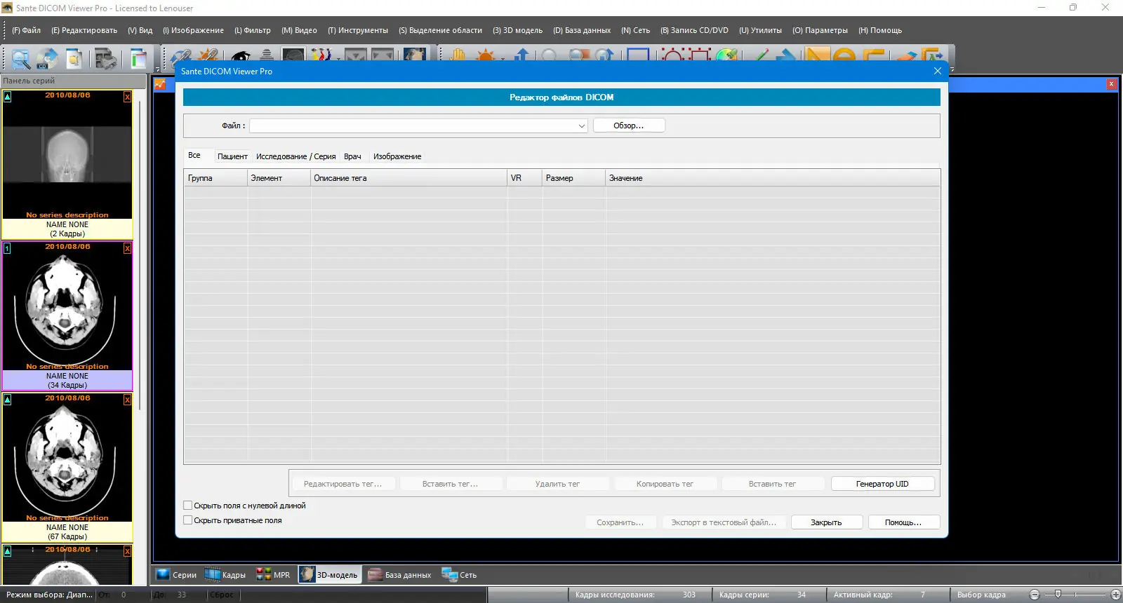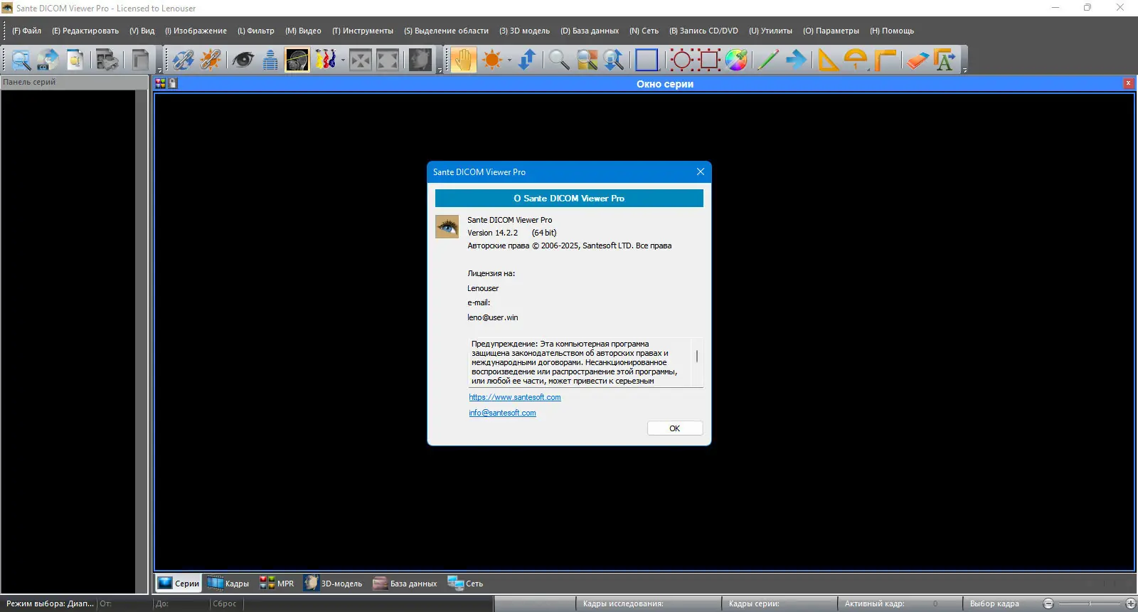 Sante DICOM Viewer Pro — это уникальная и разработанная с нуля программа, созданная нами на основе передовых технологий программирования. В отличие от многих средств просмотра, использующих открытые библиотеки, такая как dcmtk или itk, она обладает собственным ядром, что обеспечивает высокую производительность, расширенные возможности и максимальную безопасность данных. Программа развивается с 1999 года, за это время она стала одной из самых популярных среди профессиональных пользователей по всему миру, предлагая не просто просмотр DICOM, а полноценную рабочую станцию для диагностики, анализа и обмена медицинской информацией.