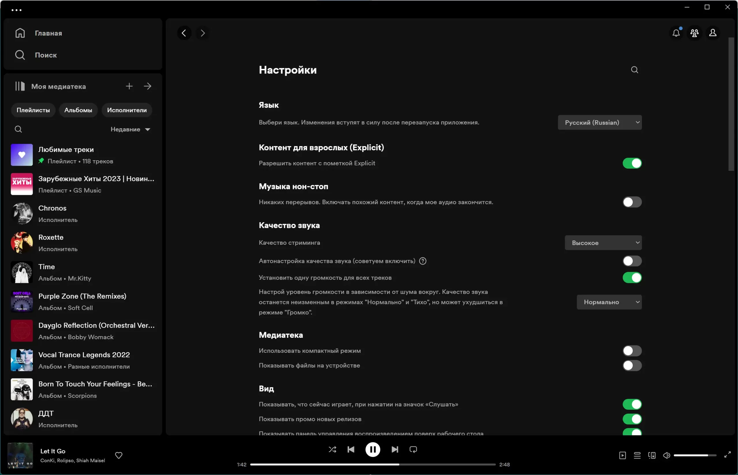 Spotify — один из наиболее известных потоковых плееров с богатым функционалом и стабильной работой. Возможности по созданию списков, прослушиванию радио и поддержке различных платформ делают его популярным среди пользователей.