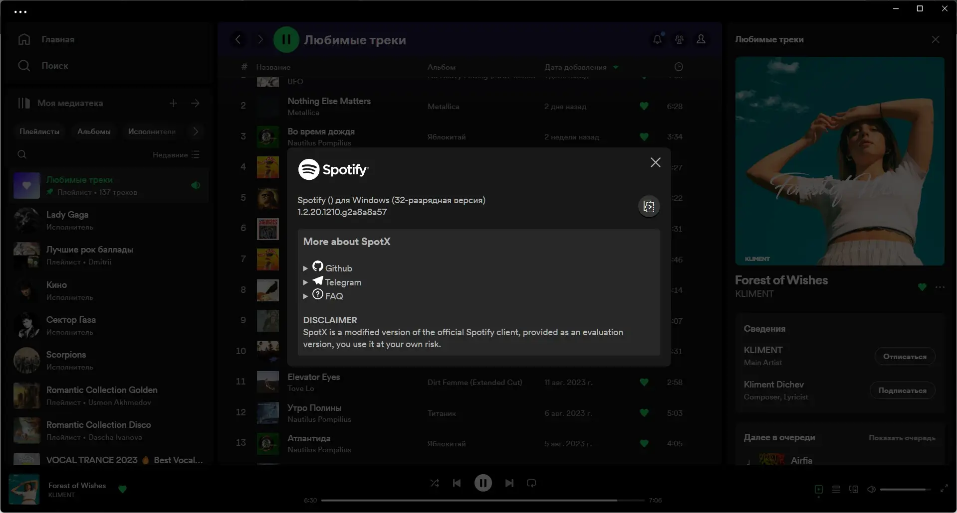 Программа для потокового прослушивания музыки с широкими возможностями и поддержкой поддержки российских пользователей через VPN.