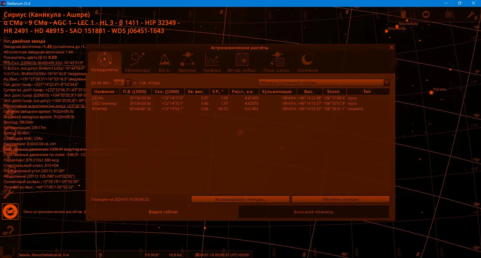 - Поддержка телескопов и окуляров, режимы симуляции затмений, сверхновых, метеоров и других астрономических событий.