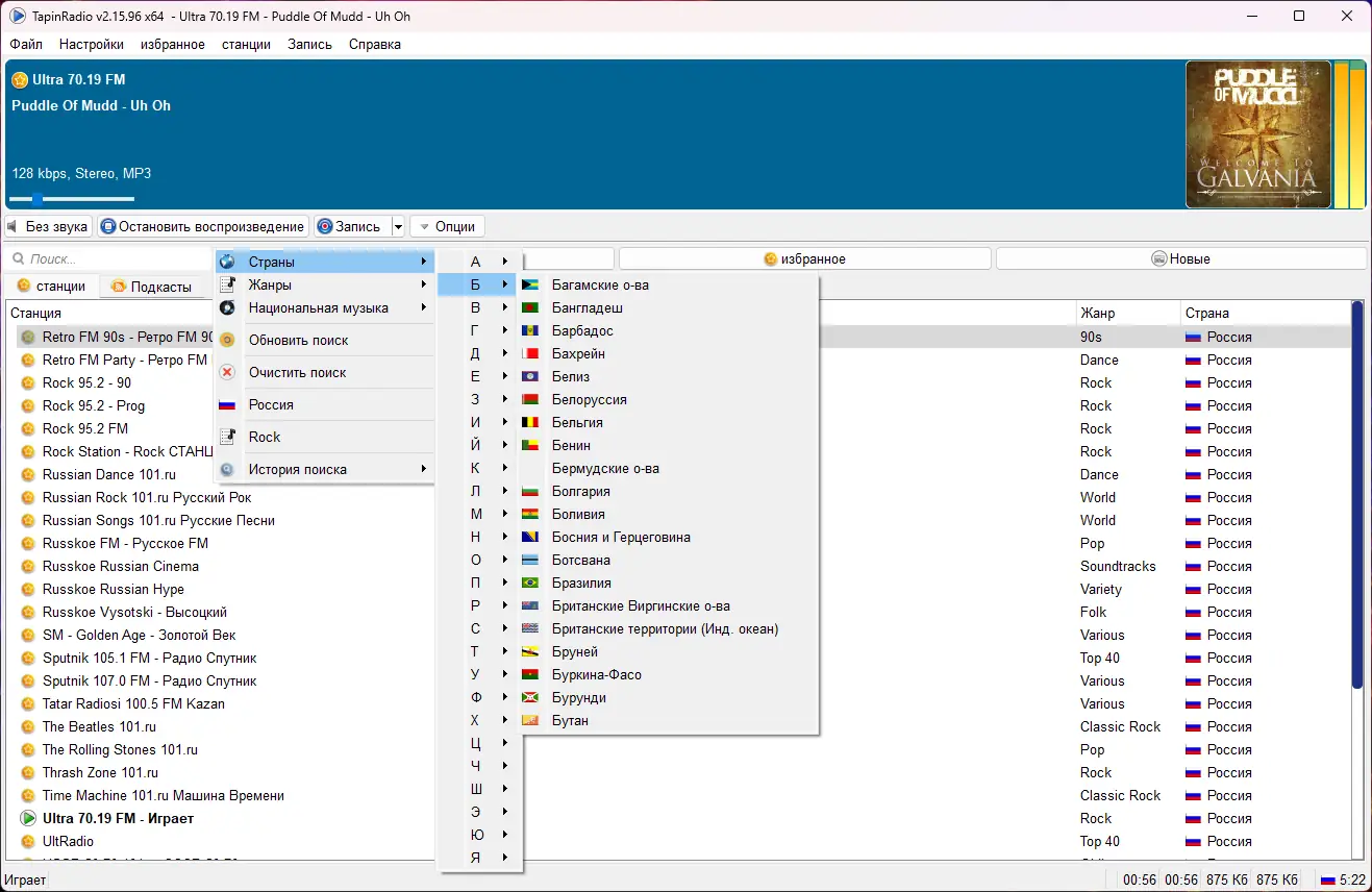 - Автоматическая проверка наличия обновлений и новых станций.