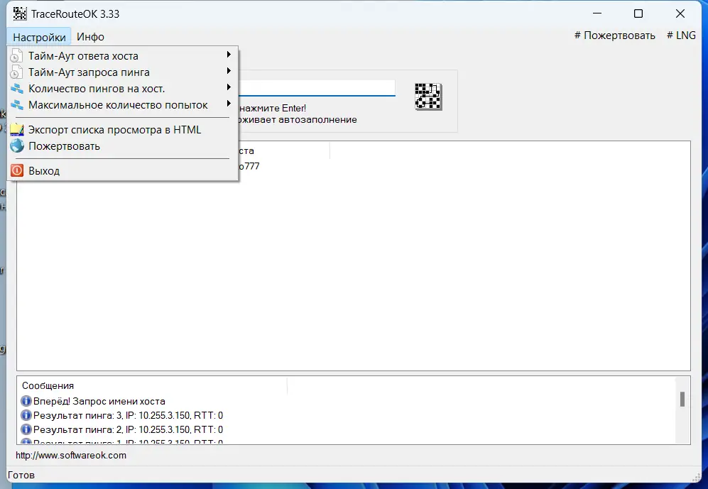 - Запустите исполняемый файл программы «TraceRouteOK».