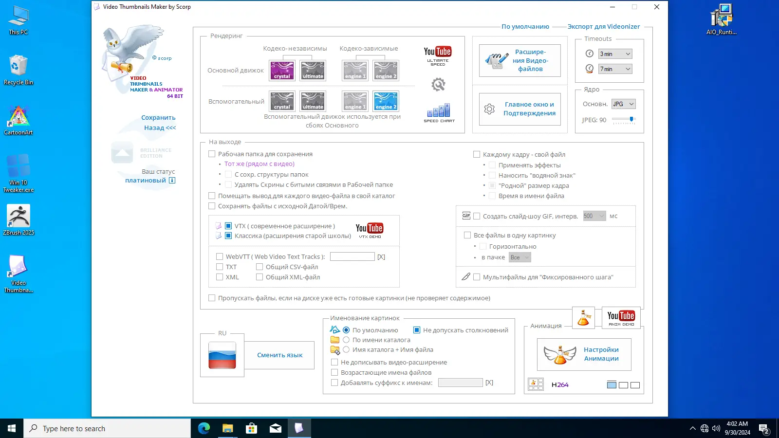 - Высокая скорость обработки за счет трех движков рендеринга.