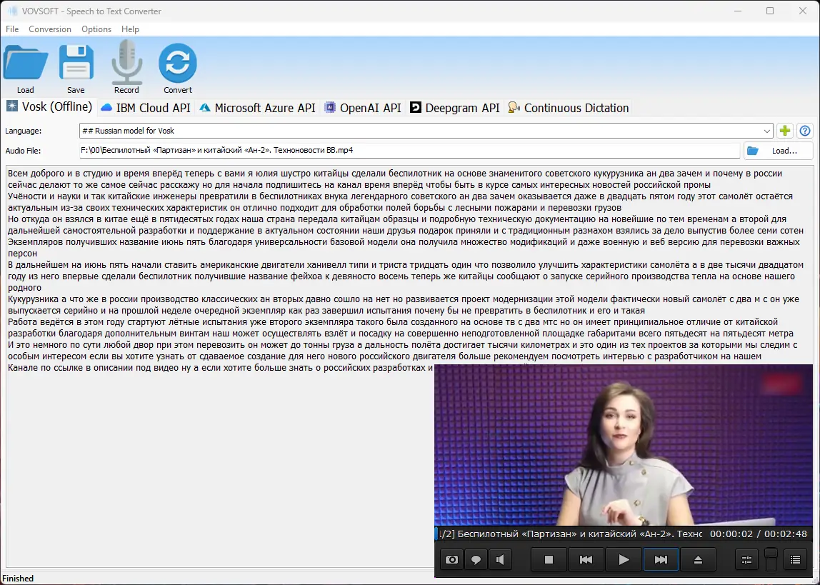 Vovsoft Speech to Text Converter — это универсальный инструмент на базе искусственного интеллекта, предназначенный для точного преобразования аудио- и видеофайлов в текст. Помимо поддержки аудиоформатов (MP3, M4A, FLAC, WAV, OGG), программа также умеет извлекать речь из видеофайлов таких форматов, как MP4, WEBM, MKV, AVI, MOV, и другие. Вы можете записывать голос через микрофон или загружать готовые файлы для автоматической транскрипции. Использование нескольких движков распознавания речи позволяет выбрать наиболее подходящий профиль для достижения лучших результатов.
