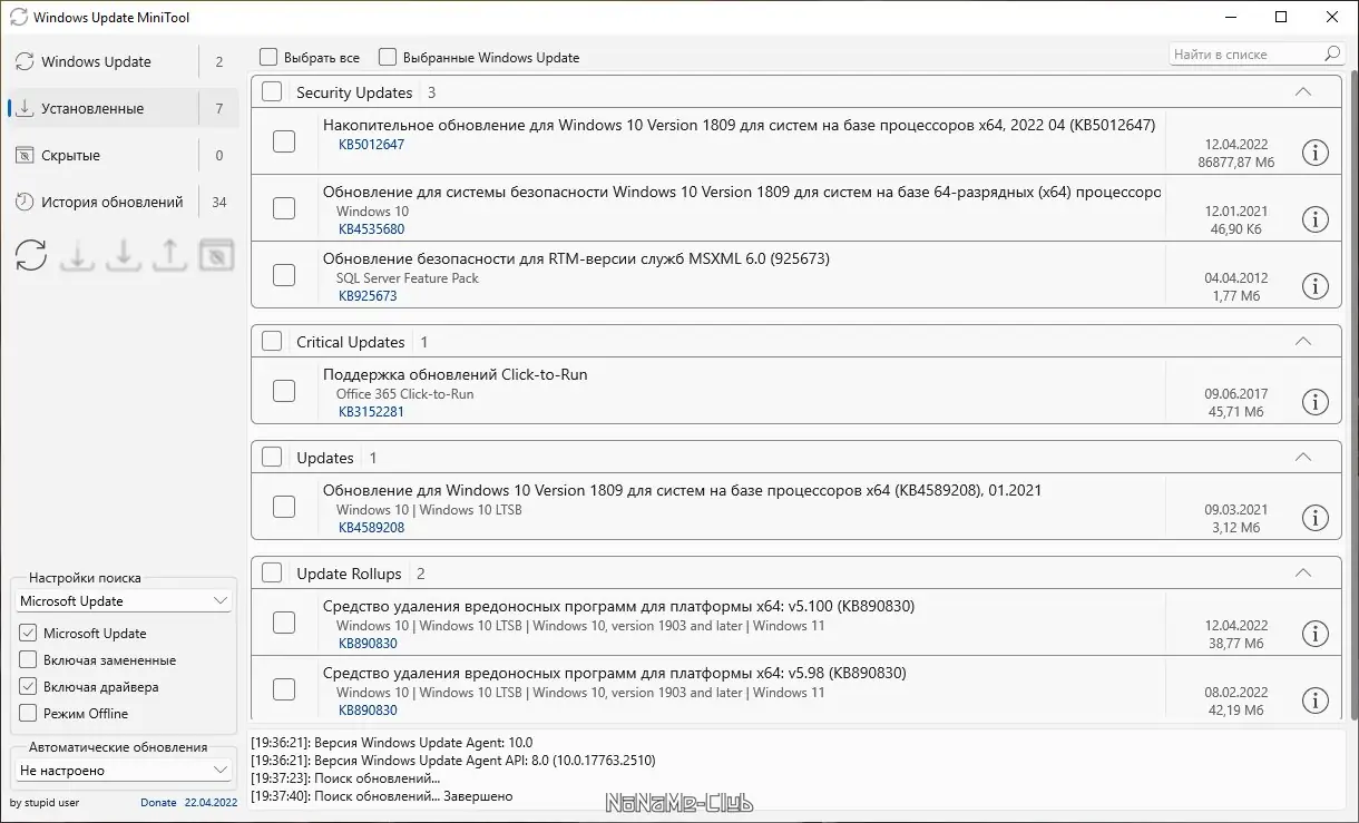 Update MiniTool — это расширенная альтернатива стандартному Windows Update из Windows 10, предоставляющая пользователю полный контроль над процессом обновления системы и продуктов Microsoft.