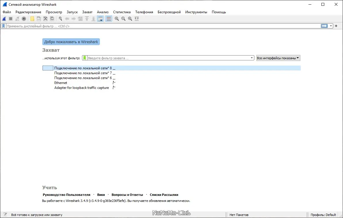 - После завершения установки — запустить программу и начать захват. Используйте фильтры и инструменты для детального изучения сетевого трафика.