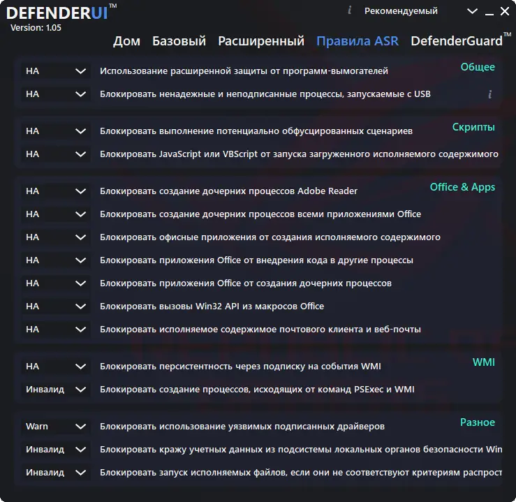 Кроме того, DefenderUI значительно повышает удобство использования системы безопасности, расширяет функциональные возможности стандартных средств и помогает раскрыть все скрытые параметры защиты, что особенно важно для опытных пользователей и администраторов.
