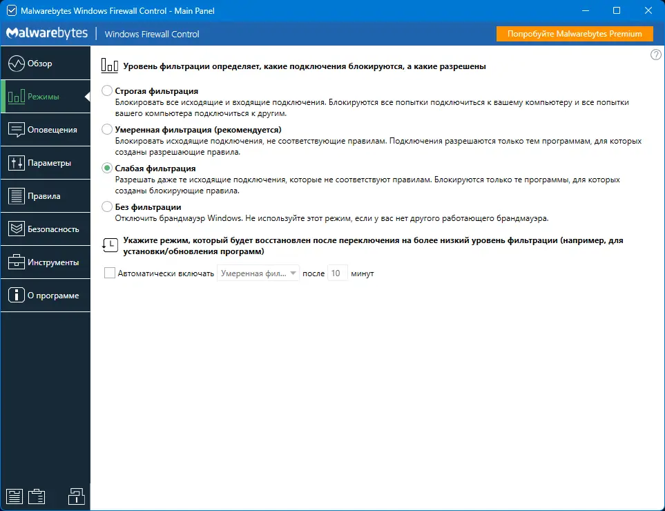 Malwarebytes Firewall Control — утилита для эффективного управления встроенным брандмауэром Windows, позволяющая быстро настраивать сетевые правила и обеспечивать безопасность системы.