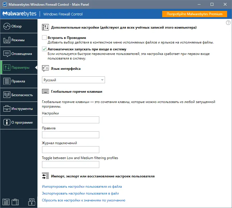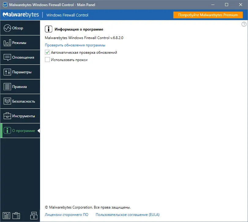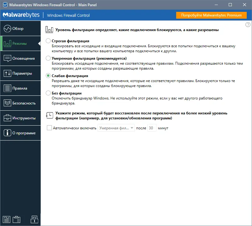 Malwarebytes Firewall Control обеспечивает расширенные возможности по управлению сетевой безопасностью и является удобным инструментом для контроля правил брандмауэра в Windows.