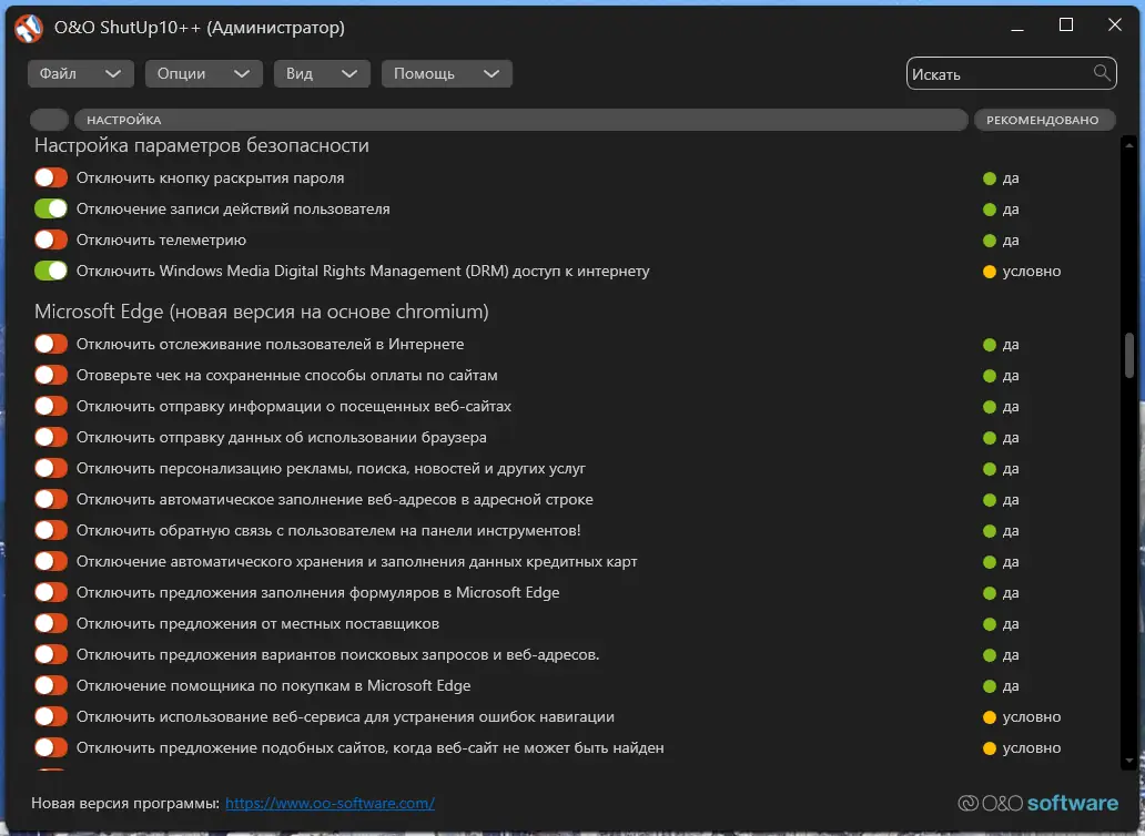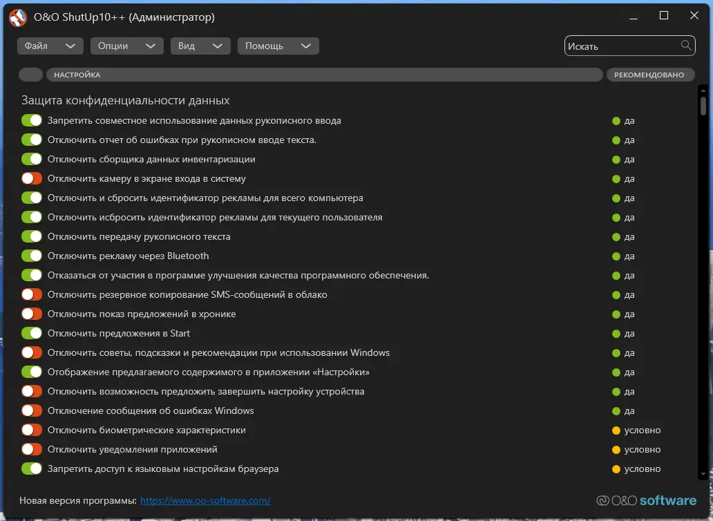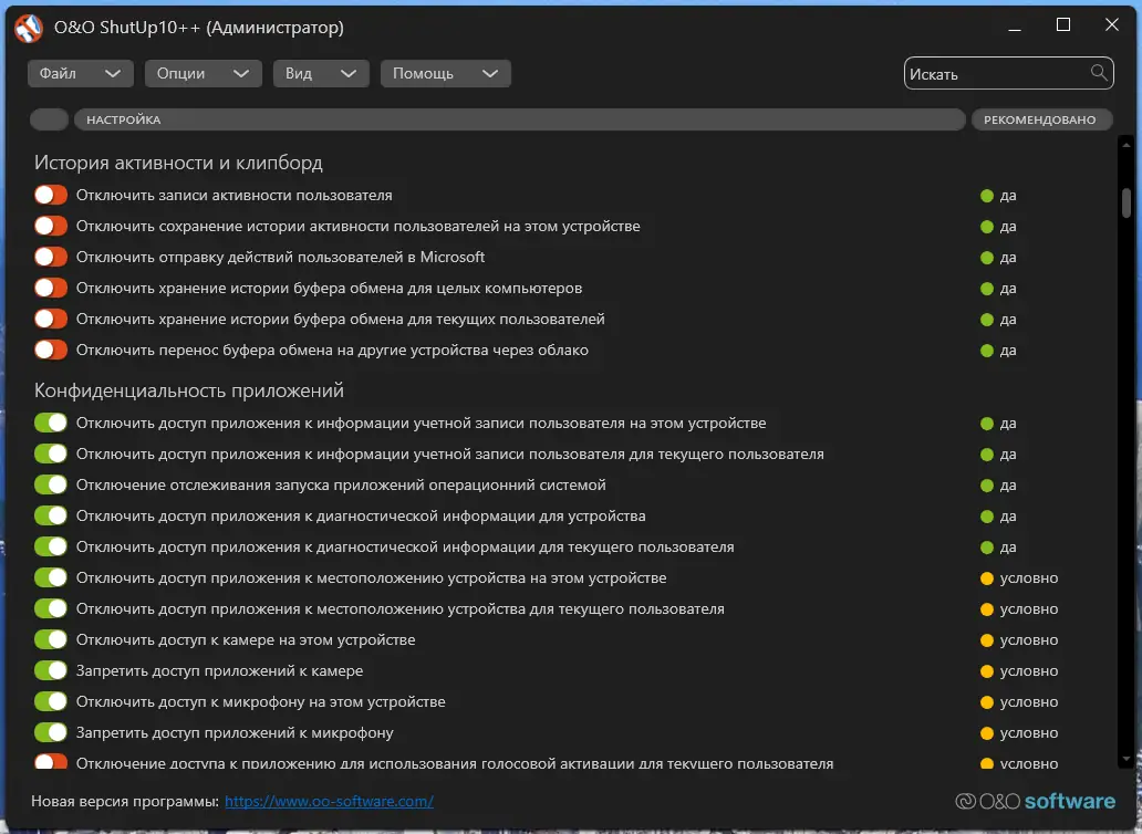 Бесплатная программа для контроля конфиденциальности в Windows, позволяющая легко управлять функциями системы и защищать ваши данные от нежелательного отправления третьим лицам.