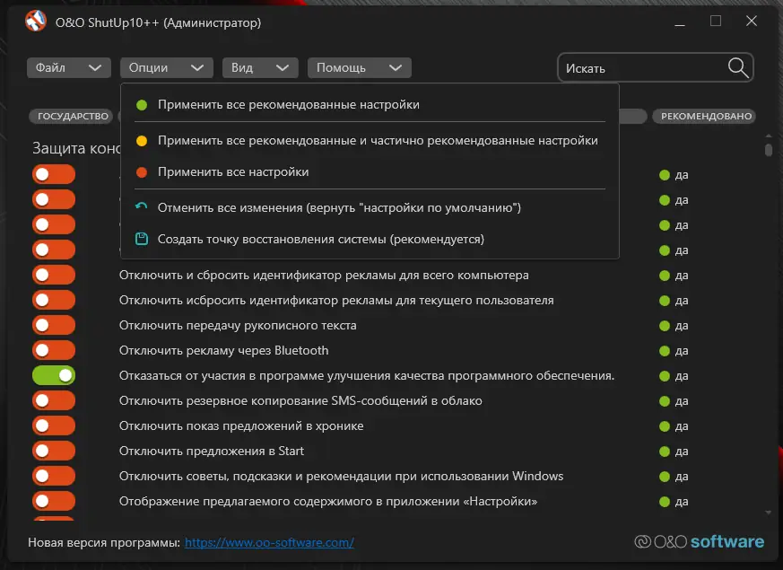 O&O ShutUp10 — это бесплатное портативное приложение, позволяющее полностью контролировать настройки конфиденциальности в Windows 10. Благодаря интуитивно понятному интерфейсу, пользователь сможет легко отключить нежелательные функции системы, повышая уровень безопасности и приватности без необходимости глубоких знаний в области IT.