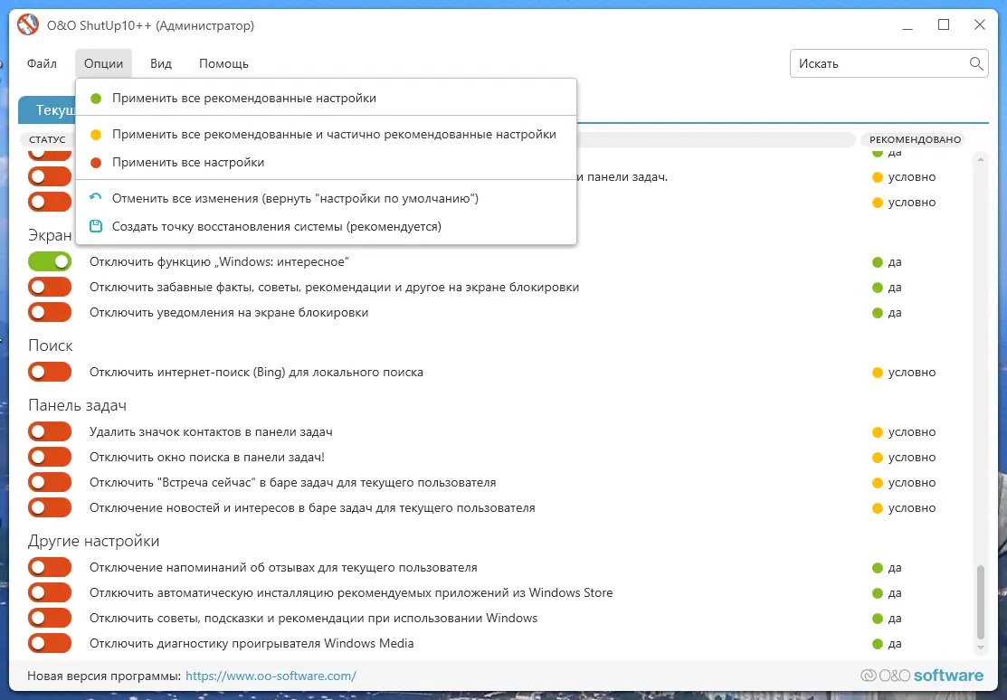 O&O ShutUp10 предлагает пользователю возможность самостоятельно решать, какие функции ОС Windows 10 и более ранних версий необходимо отключить для повышения уровня защиты данных. Благодаря простому и интуитивно понятному интерфейсу, программа позволяет управлять настройками безопасности, контролировать службы определения местоположения, обновления системы и передачу диагностической информации. Эта платформа позволяет снизить сбор и передачу персональных данных, обеспечивая больший уровень конфиденциальности.