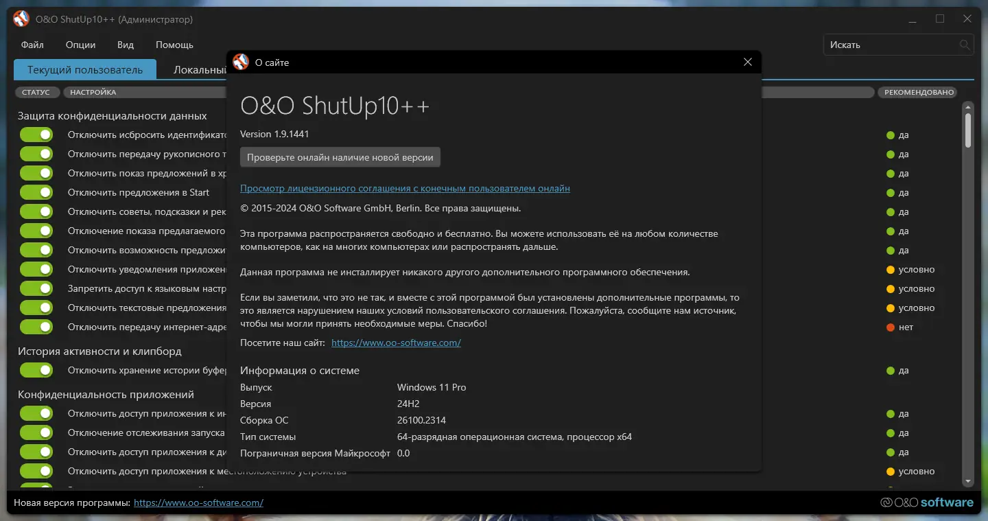 O&O ShutUp++ — эффективное решение для тех, кто хочет контролировать свои данные и защитить приватность в Windows. Благодаря минималистичному интерфейсу и отсутствию необходимости установки, использование программы становится простым и удобным.