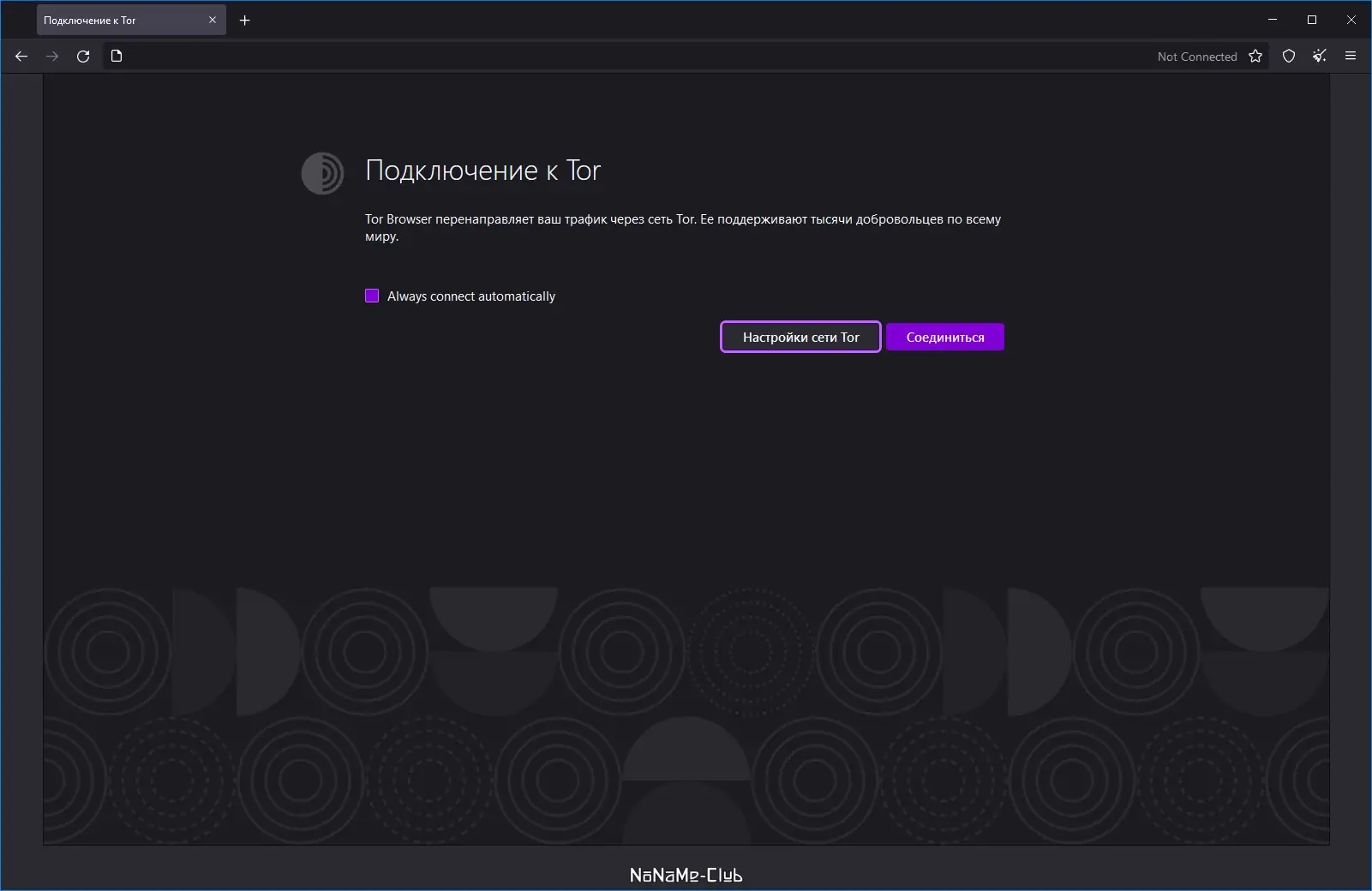 - После автоматического подключения убедитесь в статусе «Tor включен» в меню браузера