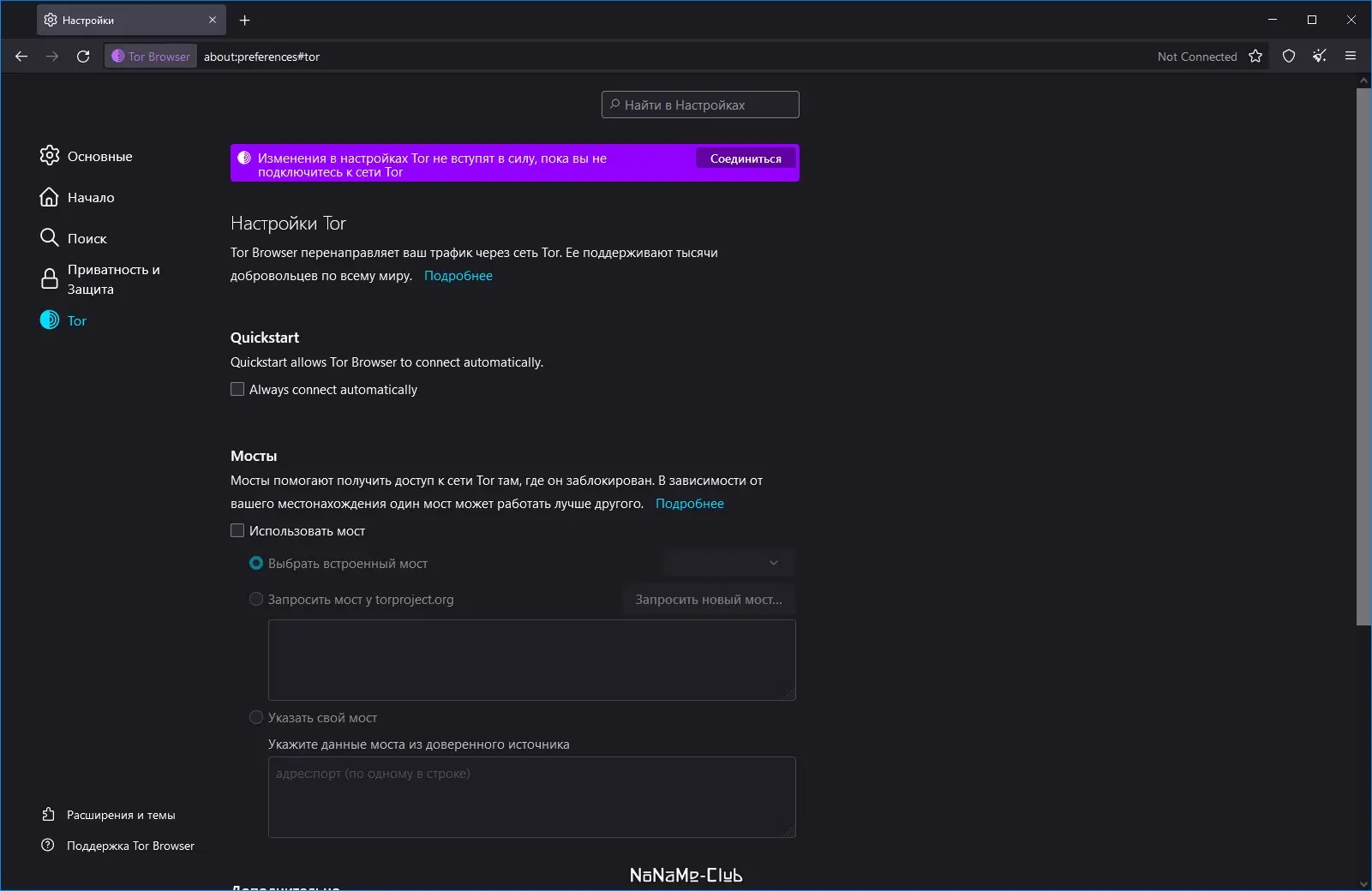 Дополнительно | подключение к интернету, отключение VPN или других сервисов, мешающих работе Tor |