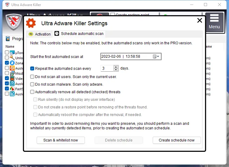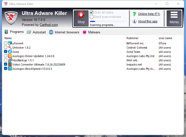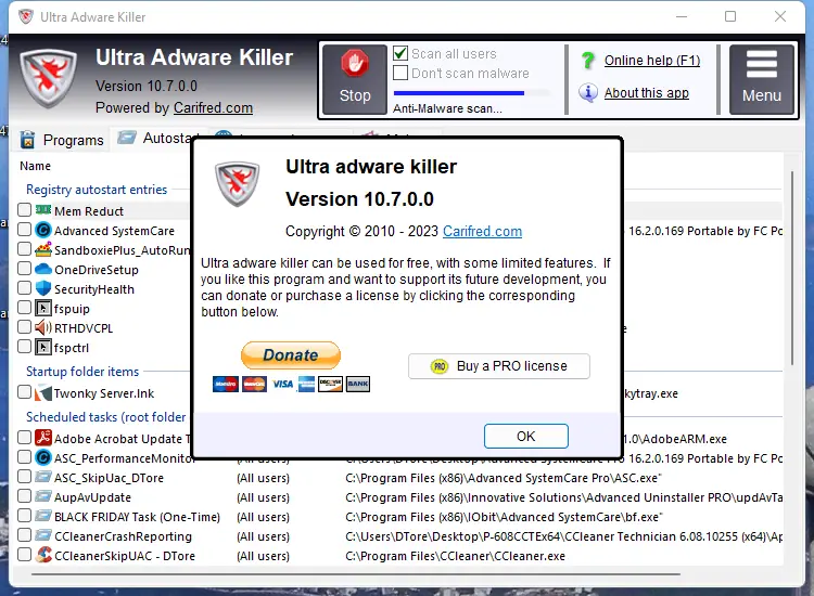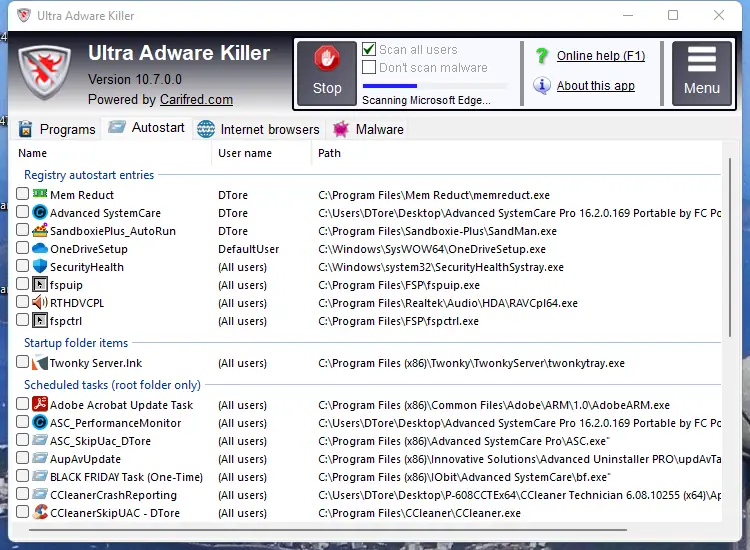 - Обнаружение и удаление adware для всех пользователей системы Windows за один запуск.