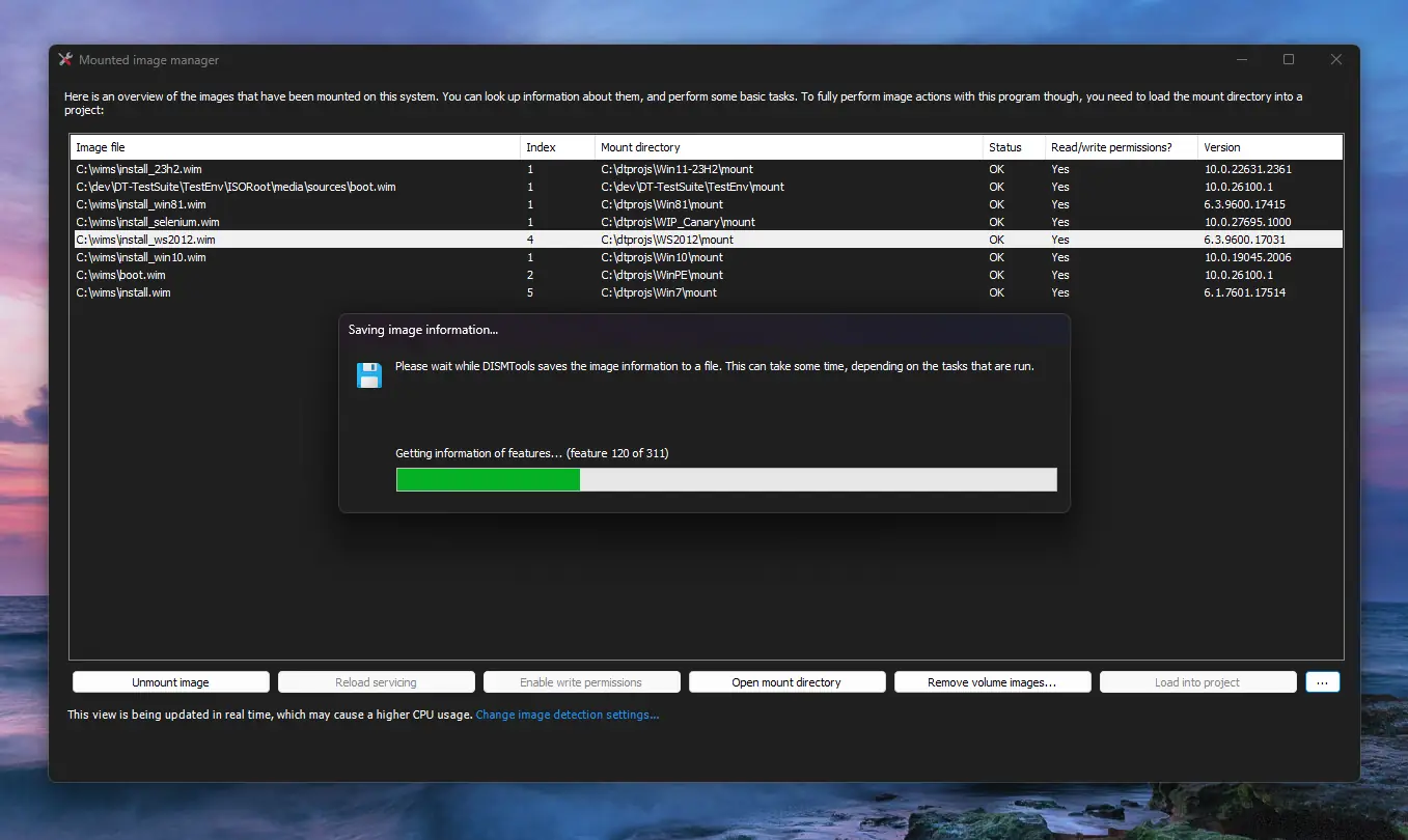 DISMTools — это современный интерфейс для DISM, предназначенный для удобного управления файлами образов Windows (WIM) и выполнения множества функций. В отличие от популярных решений вроде NTLite и других GUI, созданных для повышения доступности и автоматизации процессов, этот инструмент обеспечивает постоянное обновление, расширенные возможности и поддержку различных версий Windows, включая Windows 7, 8/8.1, 10 и 11. Работая как с 32-х, так и с 64-битными системами, программа оптимизирована для быстродействия и высокой совместимости через использование как API DISM, так и встроенного исполняемого файла.