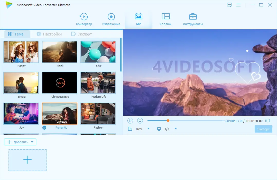 4Videosoft Video Converter Ultimate — это универсальный конвертер, предназначенный для обработки DVD и видеофайлов различных форматов. Он обеспечивает быстрое и качественное преобразование между популярными форматами, включая поддержку 4K видео и преобразование 2D видео в 3D. Кроме того, программа позволяет скачивать видео из интернета и сразу же конвертировать их с настройками по вашему усмотрению. Среди ключевых возможностей — редактирование видео, улучшение качества, добавление внешних субтитров и звуковых дорожек, вращение и обрезка видео, объединение файлов и множество дополнительных функций.